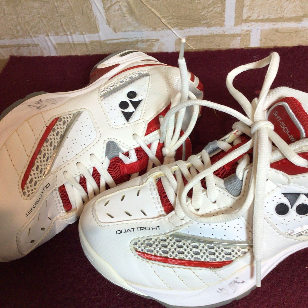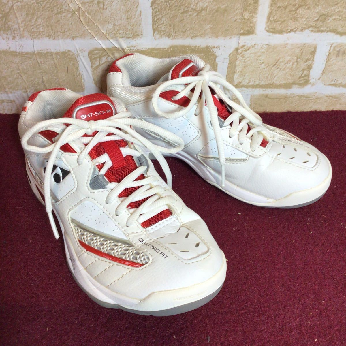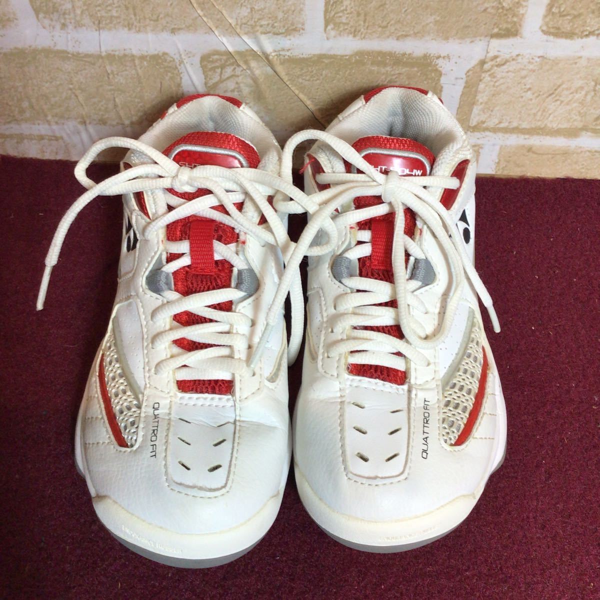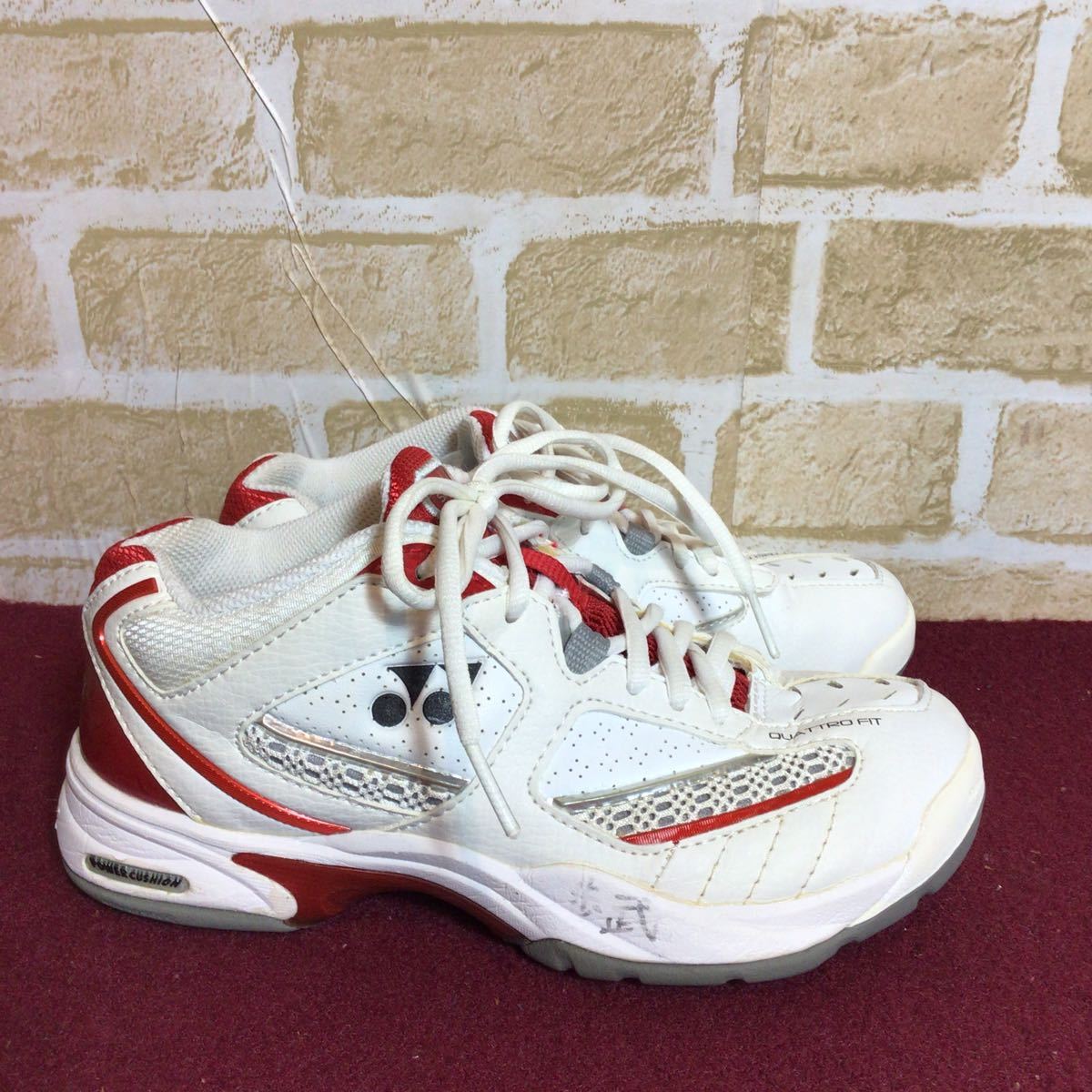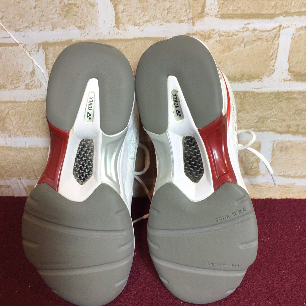 【売り切り!送料無料!】A-175 YONEX!テニスシューズ!白!赤!小さいサイズ!ヨネックス!テニス!スポーツ!中古!