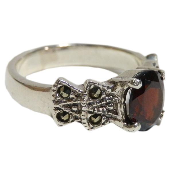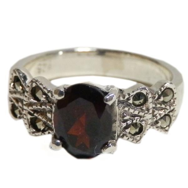 ■☆アジアン雑貨 タイ銀職人 ガーネット・リング(GR-41-13)