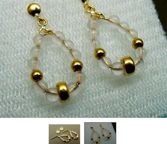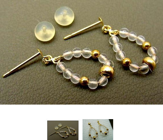 ◆98【T・B】K18/YG水晶数珠モチーフピアスP104◆