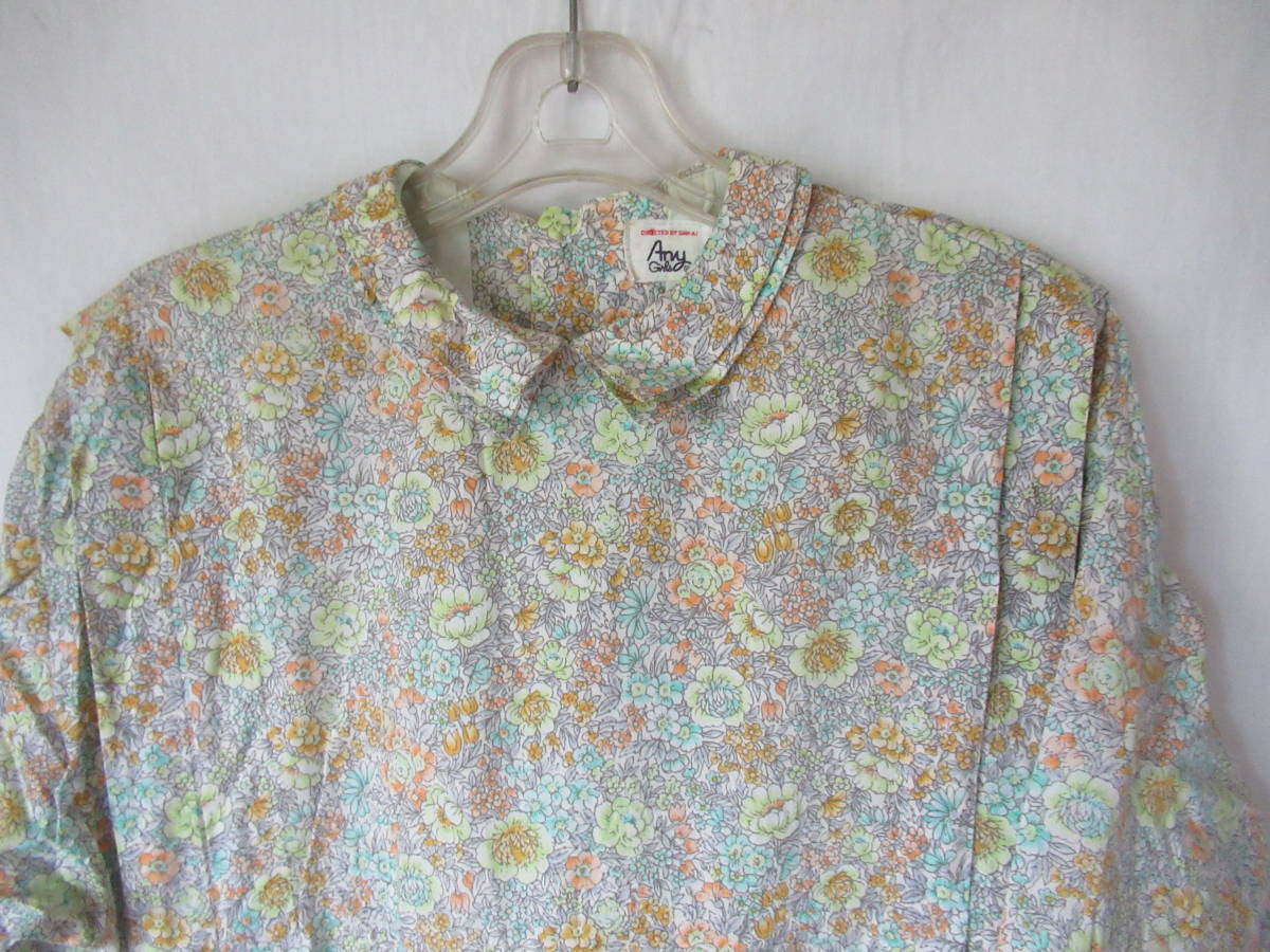 ワンピース 裏地付き 身幅50cm 着丈107cm 淡いグリーン系花柄