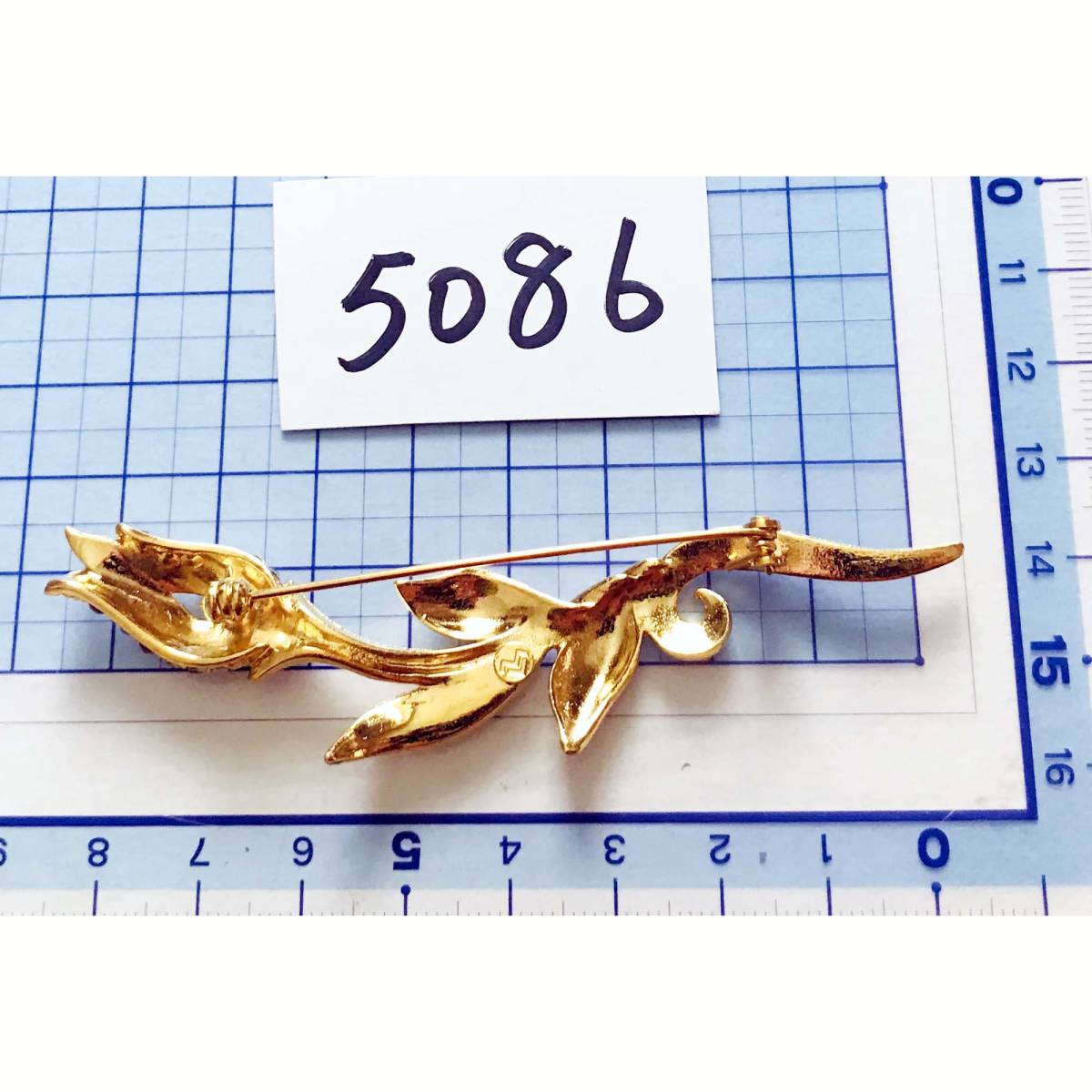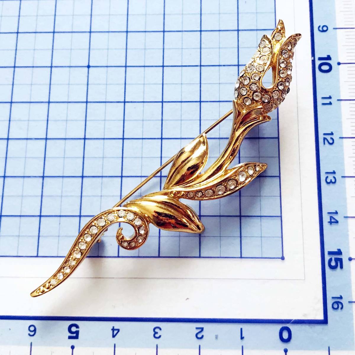 美品 MARIO VALENTINO ラインストーン チューリップ ゴールド ブローチ NO.5086