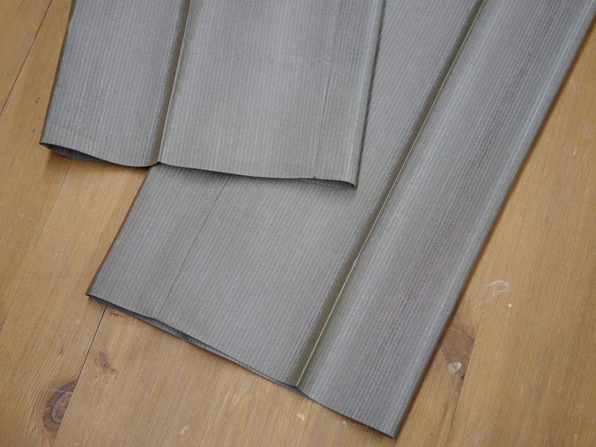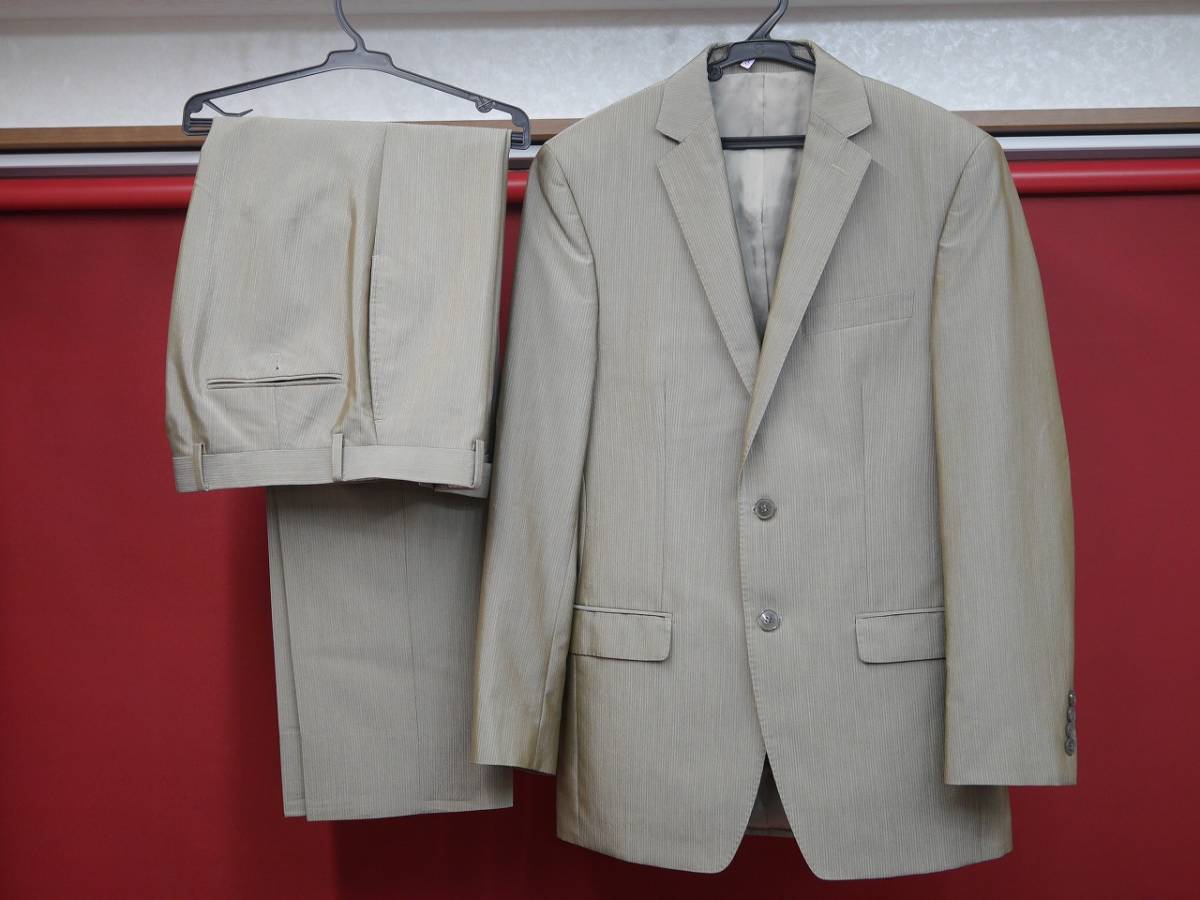 商品に興味をもっていただき、ありがとうございます。 以下お読みいただき、たくさんのご入札。お待ちしております…♪(^^)♪ ■【商品説明】■ クリーニング済☆Calvin Klein/カルバンクライン メンズスーツ シングルスーツ 上下セット シャンパンゴールド グレー系 ストライプ 36R ブランド:Calvin Klein/カルバンクライン カラー:シャンパンゴールド グレー系 サイズ:表記36R(S-M相当) 材質:83%ポリエステル 17%レーヨン 【実寸】ジャケット 肩幅44.5cm = 肩先から肩先までの直線距離。 身幅50cm = 両脇の付け根下の直線距離(胸囲は身幅×2です)。 着丈76cm = バックネックポイントから、裾までの直線距離 (衿は含みません)。 袖丈62cm = 肩先から袖口までの直線距離。 ※全てハンガーに掛けた状態で計測しております。 ※素人採寸なので多少の誤差があるかと思います。予めご了承ください。 【実寸】パンツ ウエスト76cm = ウエスト幅の直線距離×2。 股上27cm = ウエストベルト脇の上端から内股合わせ部分までの直線距離。 股下79cm = 内股合わせから内股の縫い目に沿った裾までの直線距離。 わたり幅26.5cm = 内股合わせからももの外側の縫い目までの直線距離。 裾幅20cm = 裾の両脇間の直線距離。 ※全て平置きの状態で計測しております。 ※素人採寸なので多少の誤差があるかと思います。予めご了承ください。 176cm62kgの私でピッタリ着れるサイズ感でした。参考程度にお考え下さい。 ■【商品状態】■ 2021/12/10にクリーニング済みです。 傷や汚れなど目立つダメージなくまだまだ着ていただけるコンディションです。 ガーメントバッグに入れ、丁寧に梱包してヤマト便にて発送させていただきます。 |