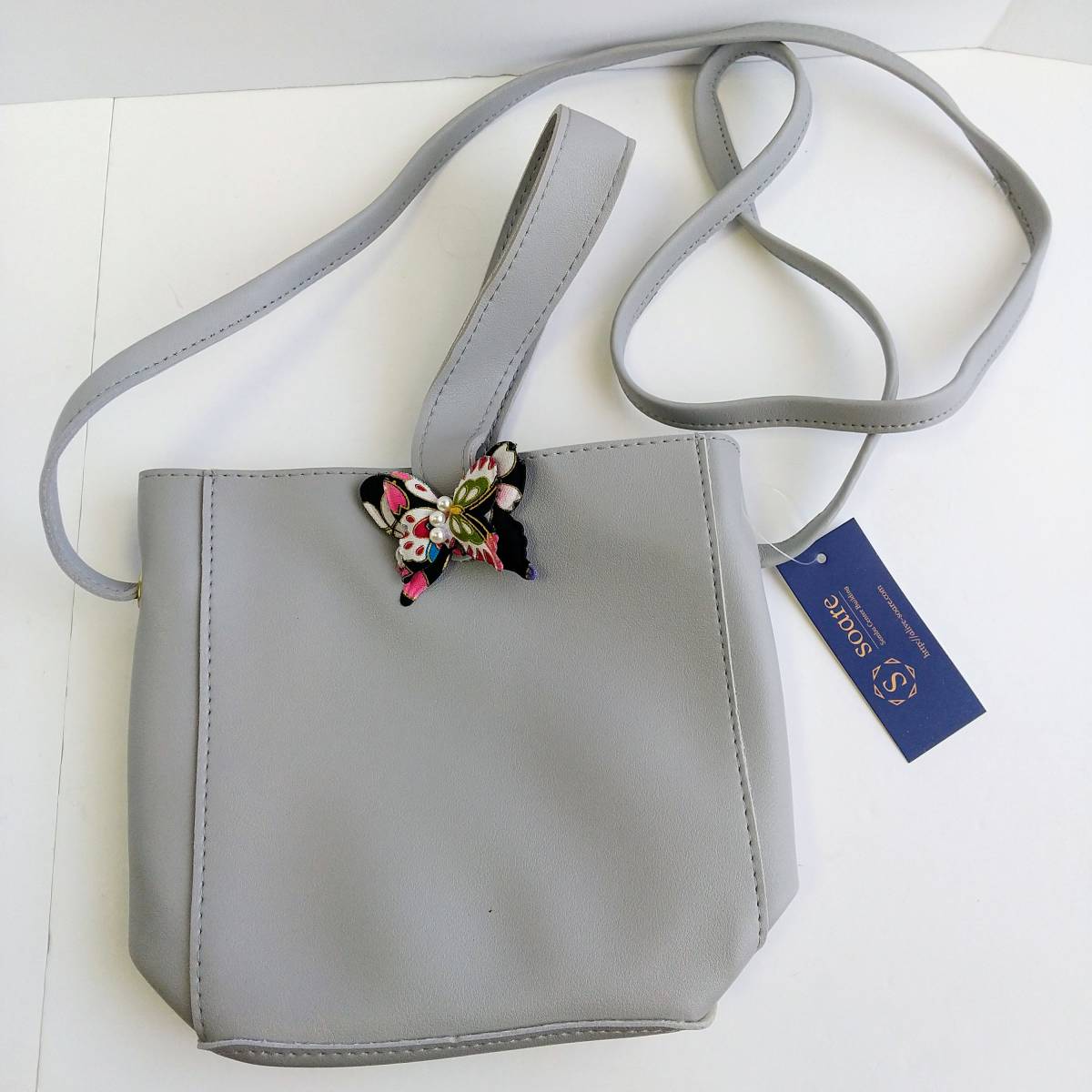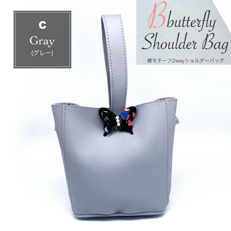 【未使用品】蝶モチーフ ショルダーバッグ ハンドバッグ グレー☆sale