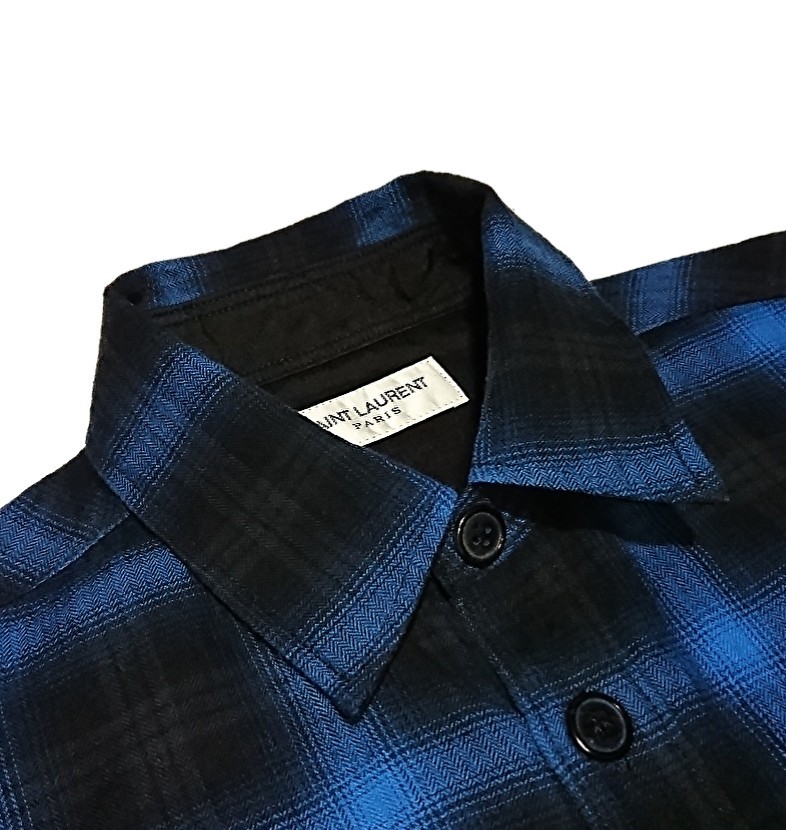 16SS エディ期 サンローランパリ オーバーサイズ オンブレ チェックシャツ