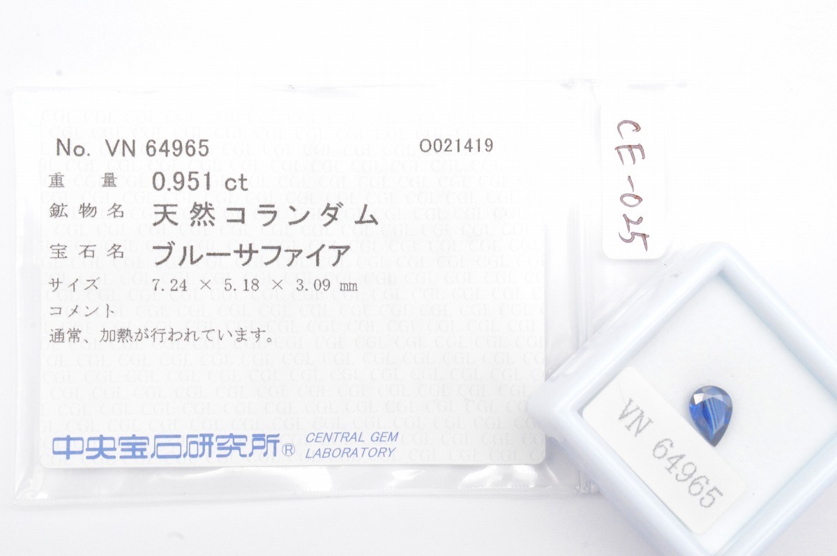 | 商品名 | 天然ブルーサファイア【コランダム】ルース 0.951ct ペアシェイプ CGLソーティング 宝石 ジュエリー 製品制作 |
