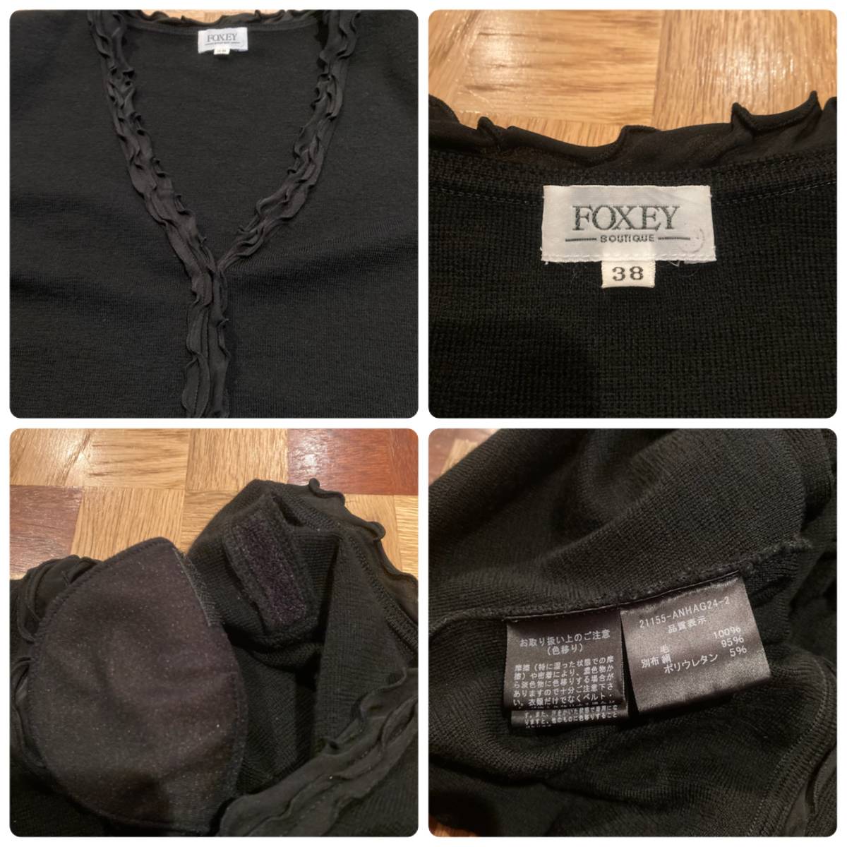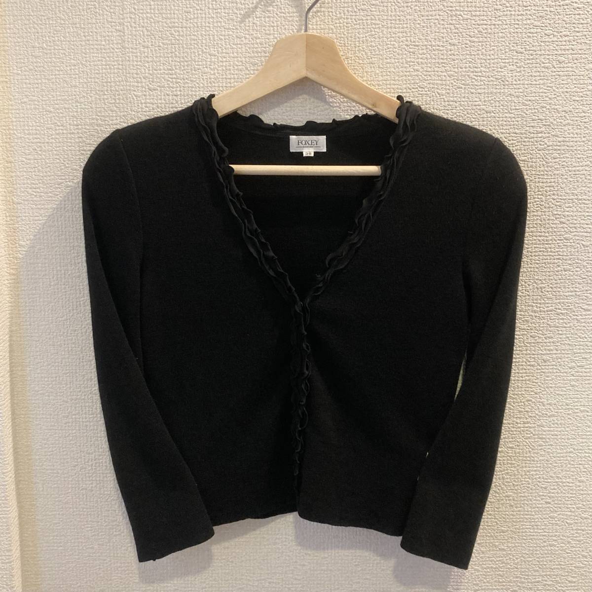 フォクシー フリル調シルク使い切替ニットカーディガンジャケット黒38