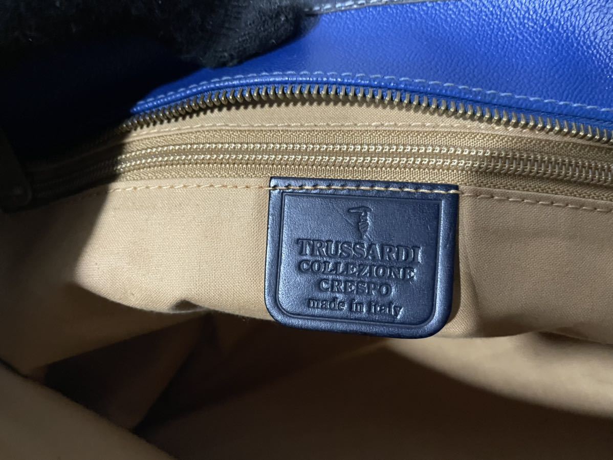 美品トラサルディ TRUSSARDIハンドバッグ青レディース通勤通学仕事ビジネス旅行トラベルレディース