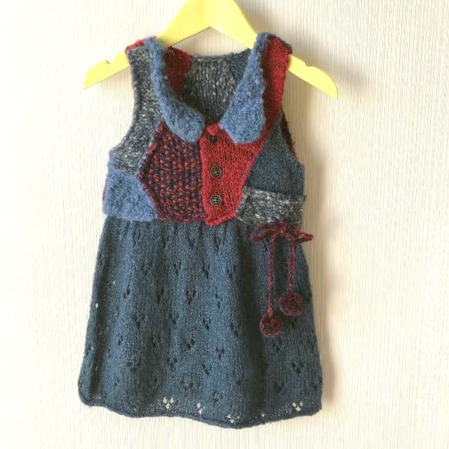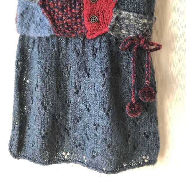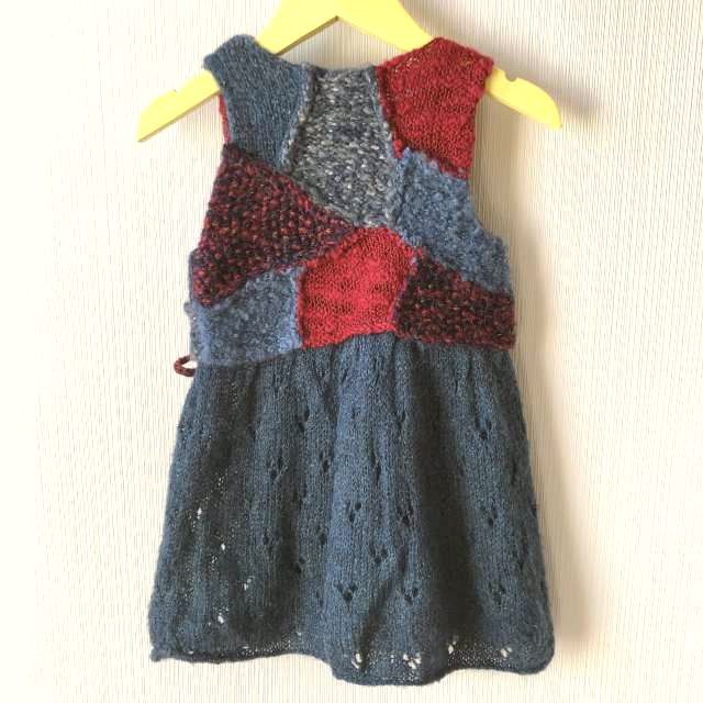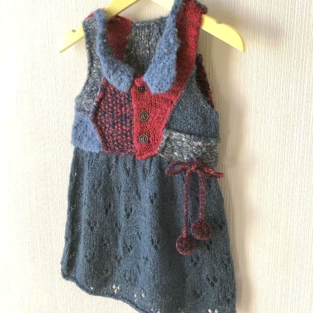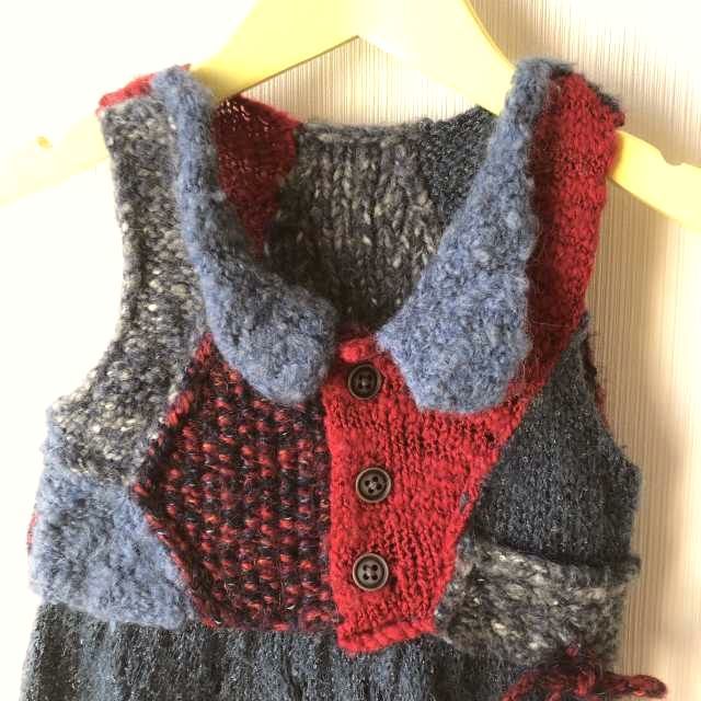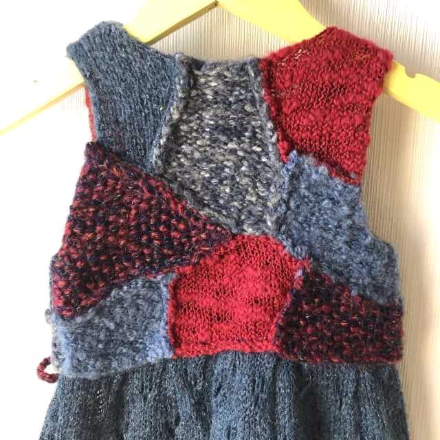 色んな色・種類の毛糸を使ってハンドメイドにてパッチワーク編みしたチュニックワンピースです。
