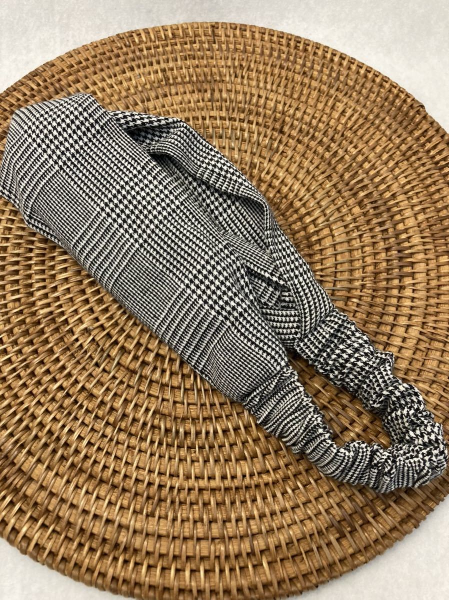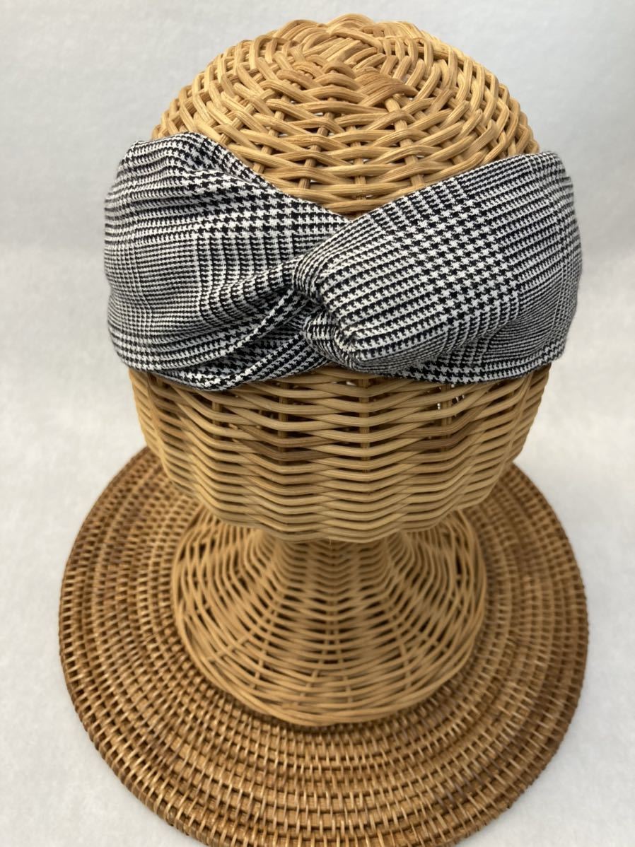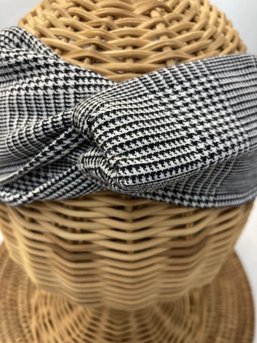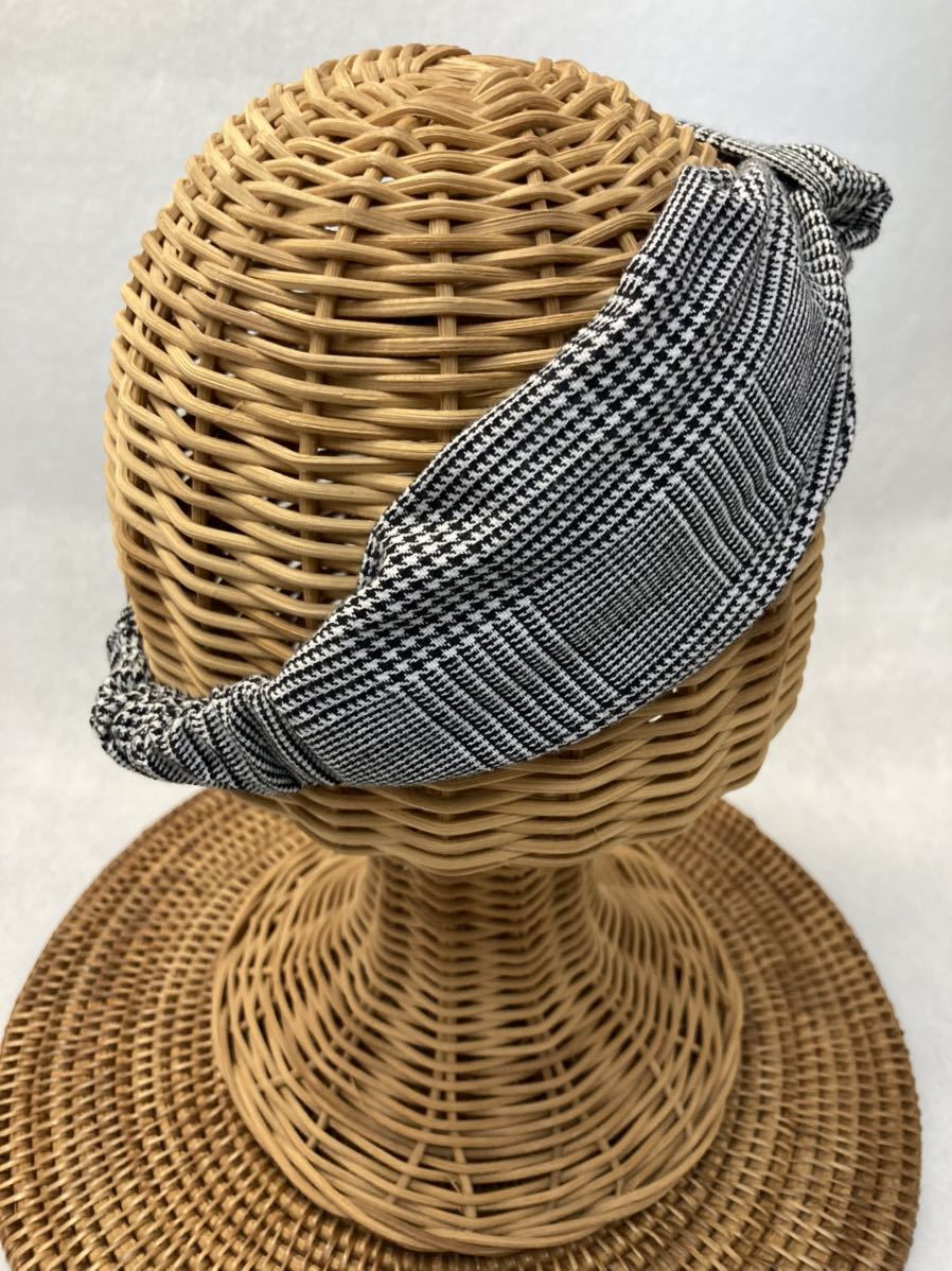 送料無料♪新品! ジュニアサイズ *頭囲52~54㎝位 ヘアバンド・ターバン♪ グレンチェック(前クロス)  CHA-CA。