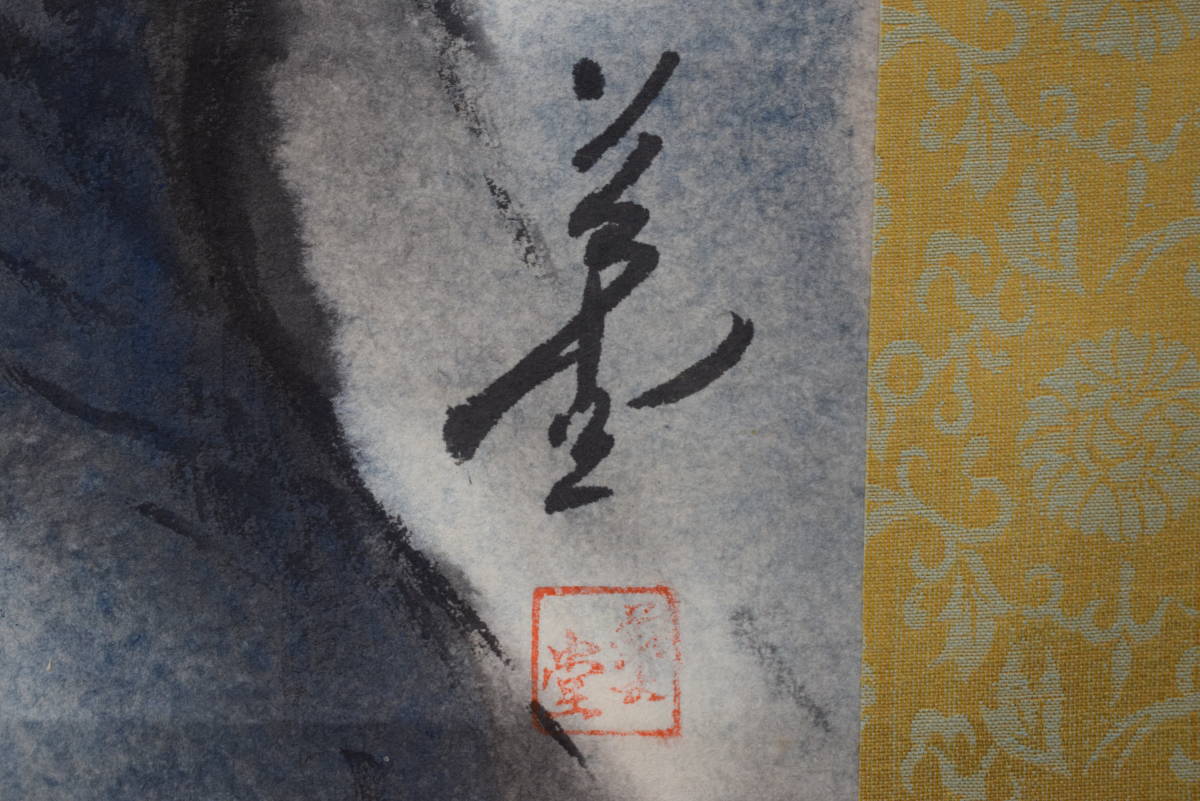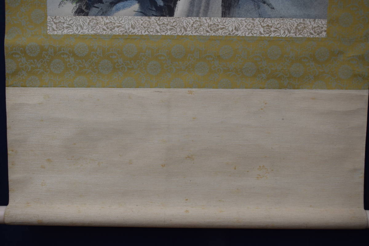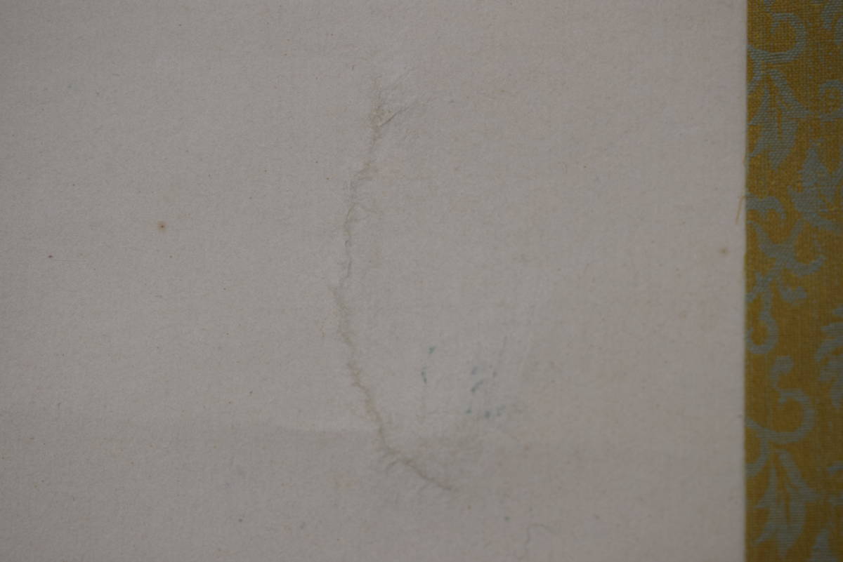 【作品状態】 本紙は紙本肉筆です。本紙は一ヶ所のキズあります。表装は天地によく目立つ多数の糊シミあります。