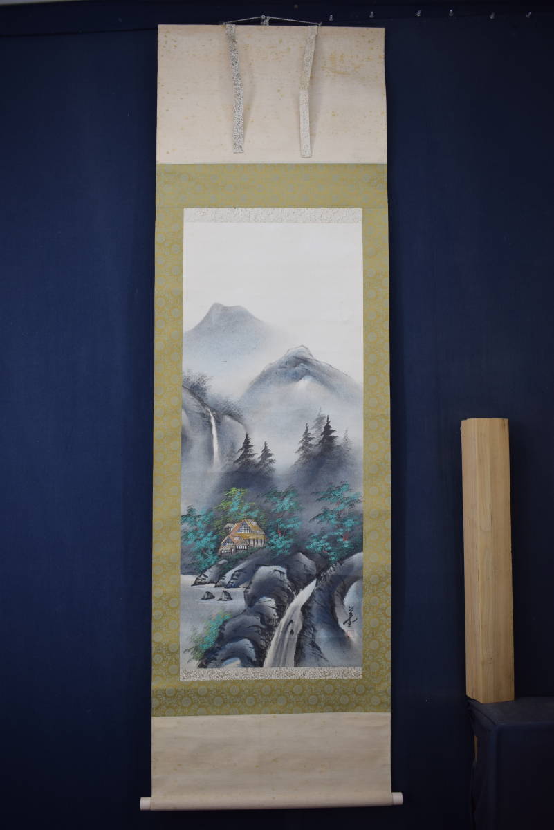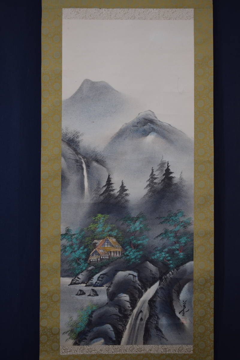真作/作者不詳/山水図/山家図/掛軸☆宝船☆Z-70