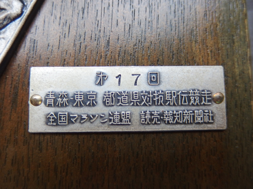 890971a【メ便】全国マラソン連盟 読売・報知新聞社 青森-東京 都道県対抗駅伝競走 記念品 5点*中古品/15回~18回(17回は2点あり)/木製