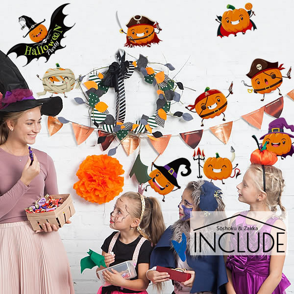 ウォールステッカー ハロウィン かぼちゃのお化け お化けの子供 かぼちゃ戦士 半熟英雄 こうもり ジャックランタン スパイダー