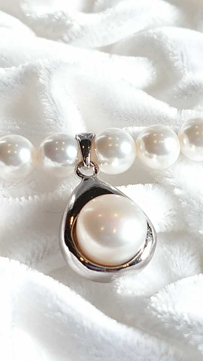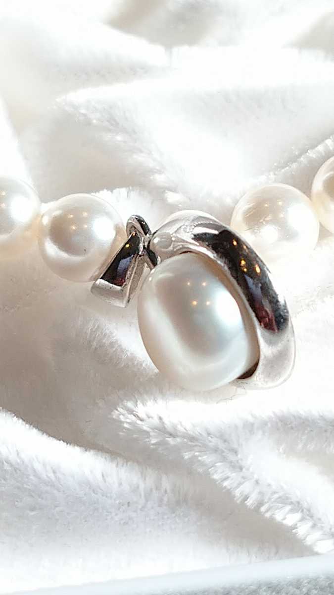 トップは本真珠、シルバー仕上げで925刻印があります。