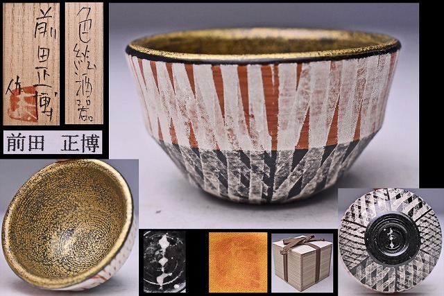 前田正博 ★ 色絵 ぐい呑 ★ 共箱 共布 栞 ★ 小品ながら氏独特の世界観が十分に堪能できる逸品 ★ 酒器 ★