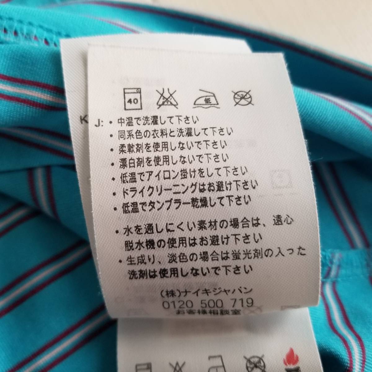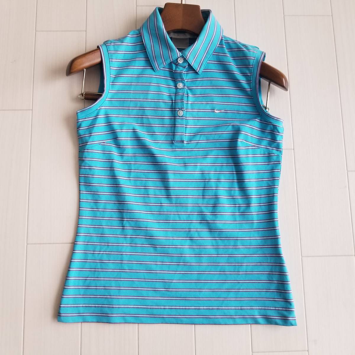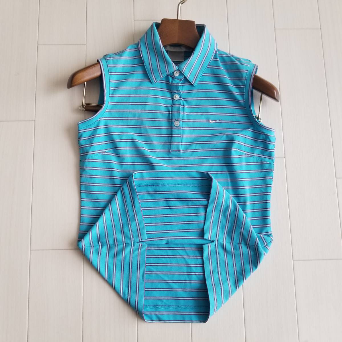 NIKE ナイキ シャツ ノースリーブ ポロシャツ ボタン ワンポイント 水色 ボーダー レディース サイズS スポーティ ゴルフ カジュアル F14