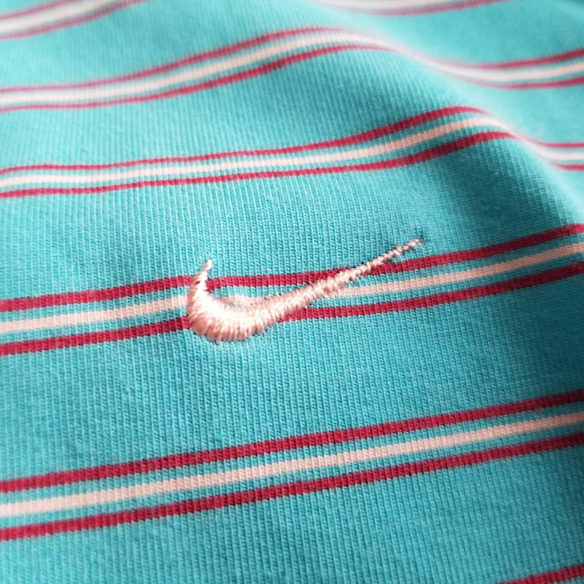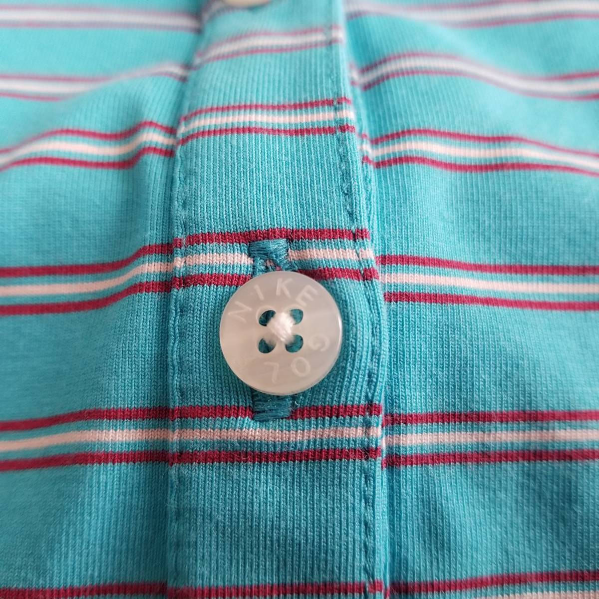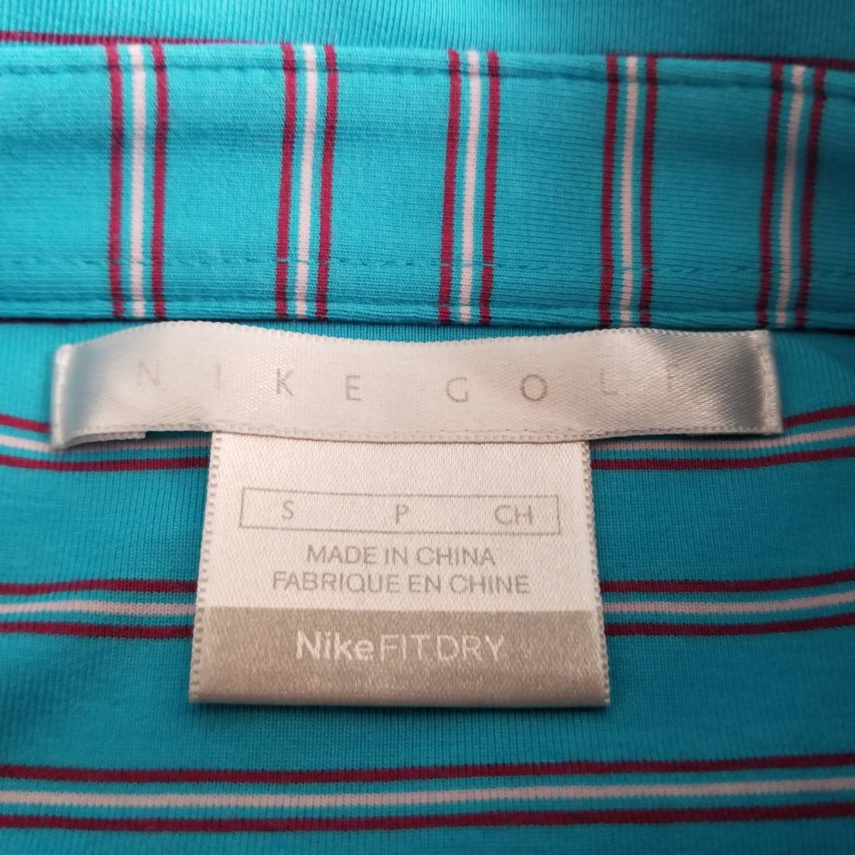 NIKE ナイキ シャツ ノースリーブ ポロシャツ ボタン ワンポイント 水色 ボーダー レディース サイズS スポーティ ゴルフ カジュアル F14