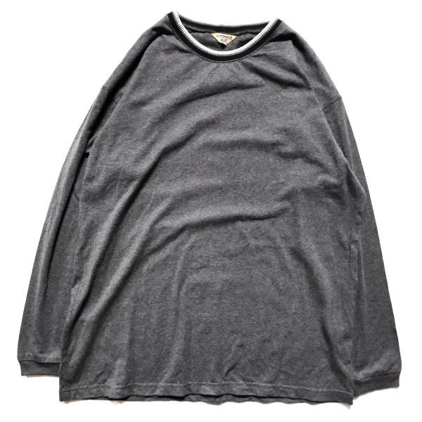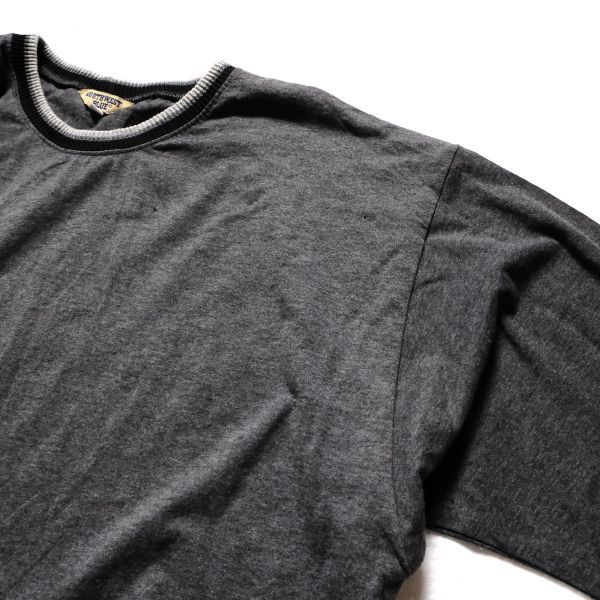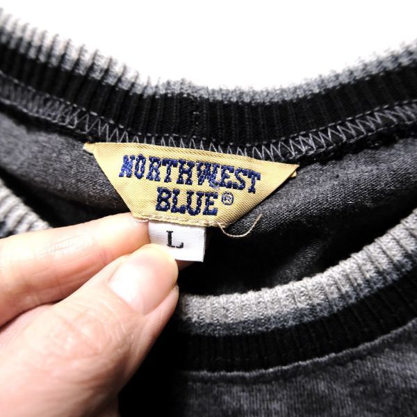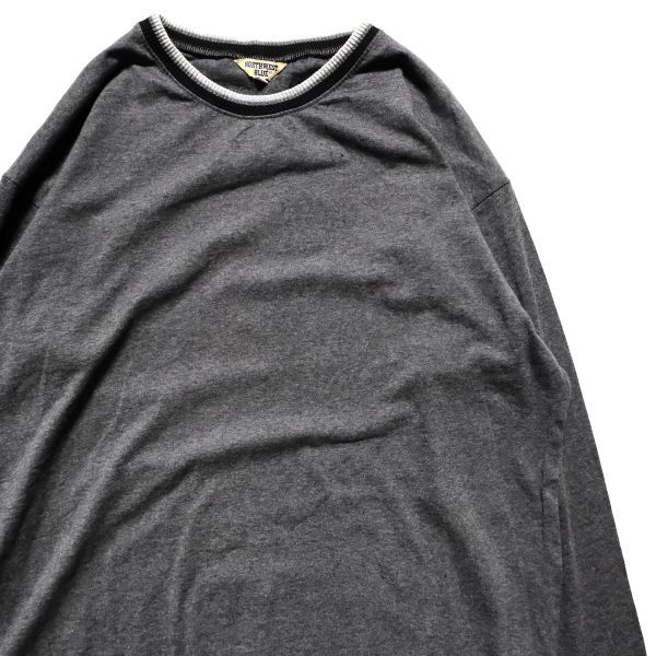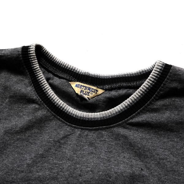 80's USA製 northwest blue クルーネック ロングスリーブ コットン Tシャツ 灰×黒 (L) グレー ロンT 無地 80年代 アメリカ製 オールド