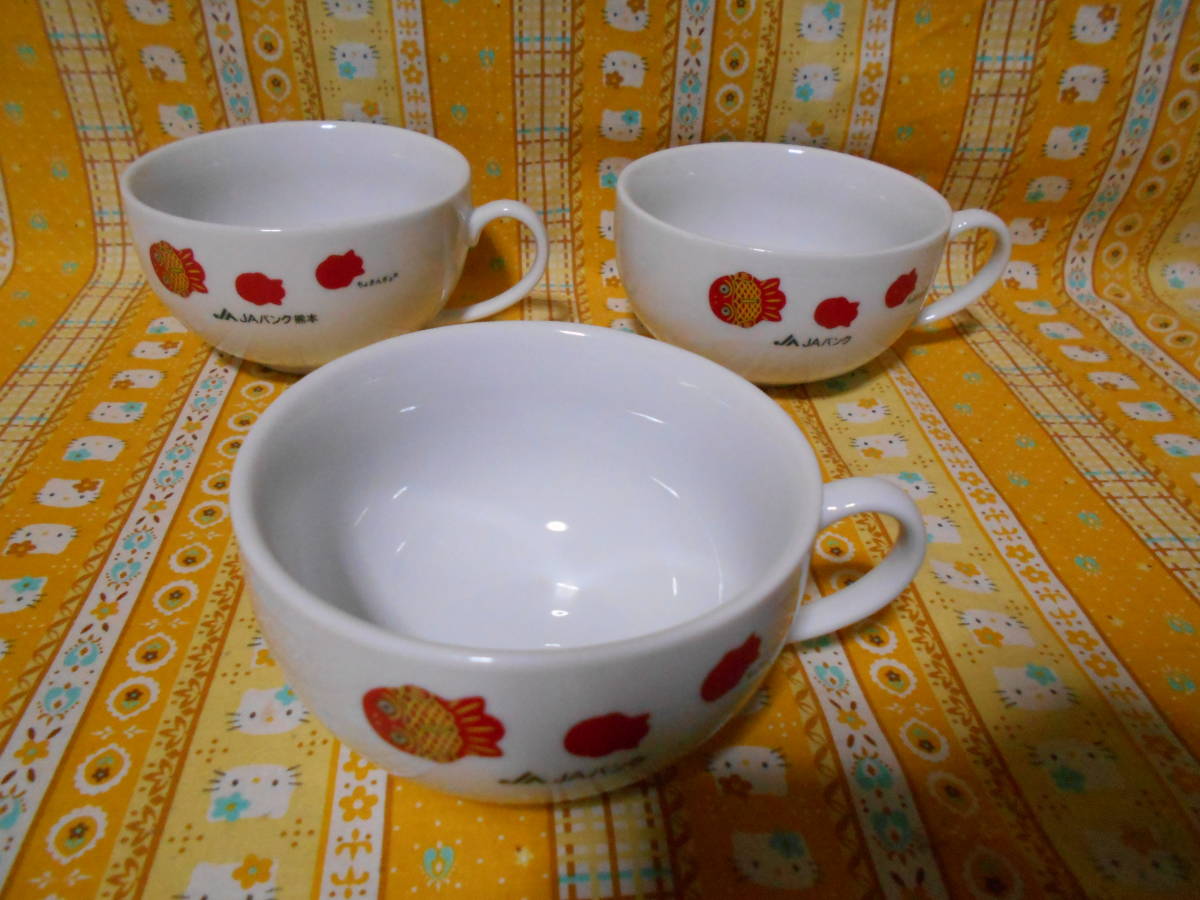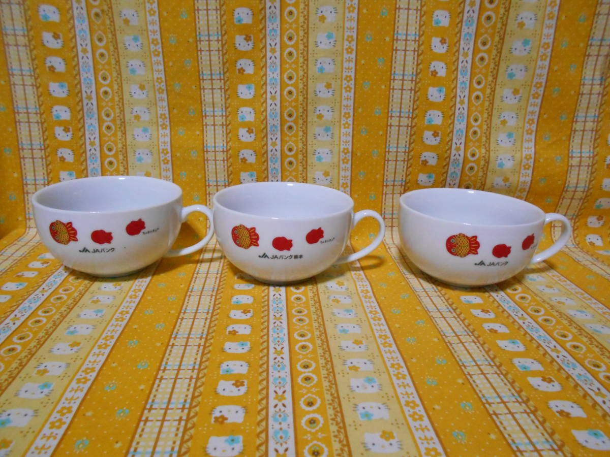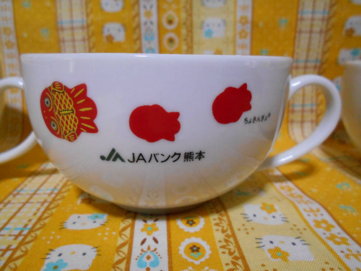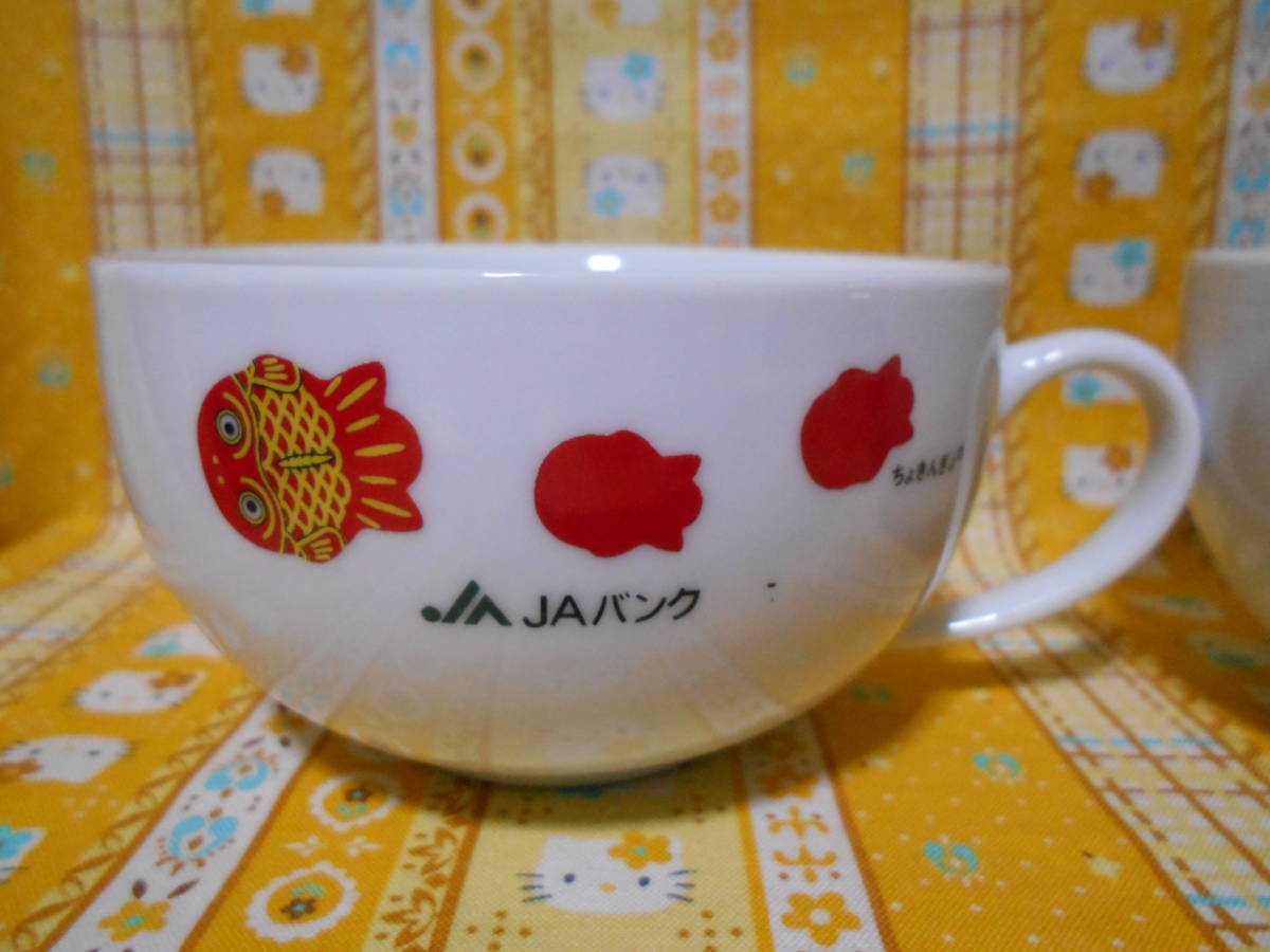 ♪ちょきんぎょ新品陶器製スープカップ2個セットJAバンク2個&JAバンク熊本