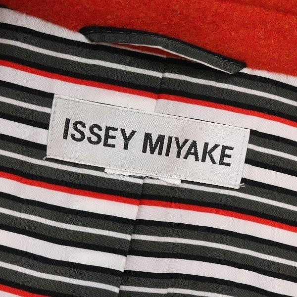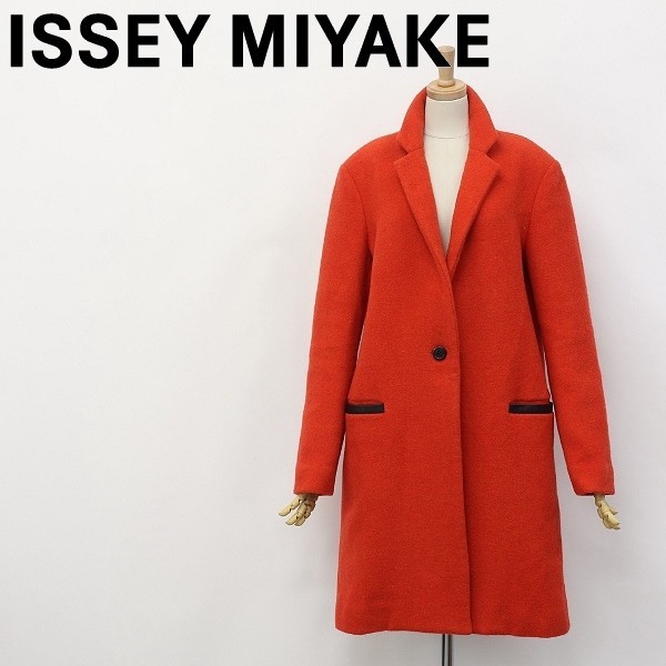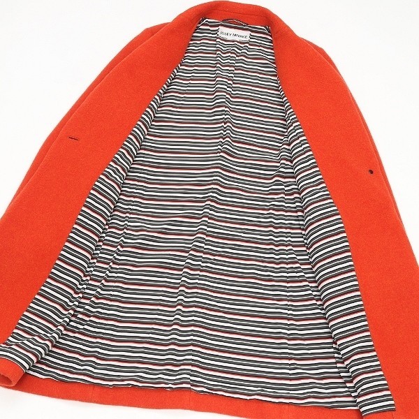 | ◆ISSEY MIYAKE/イッセイミヤケ 裏地ボーダー柄 レザー切替 ウール チェスター コート オレンジ系 | |