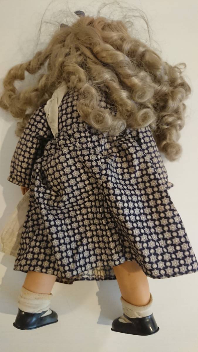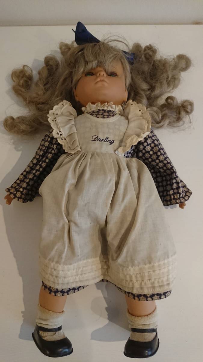 寝かせると目を閉じるスリープアイドールです。良い顔で、たいへんきれいだと思います。恐らく髪の毛の下に刻印が埋もれていて、よいものですがメーカーは不明です。顔はたいへんかわいらしく、まぶたがしっかり動作します。頭部と手足はやや軟らかい樹脂製で、胴体はぬいぐるみのような作りです。古い時代の人形には一見して分からない隠れた経年劣化や故障がある場合もございます。苦情返品なしでお願いいたします。45センチほどです。