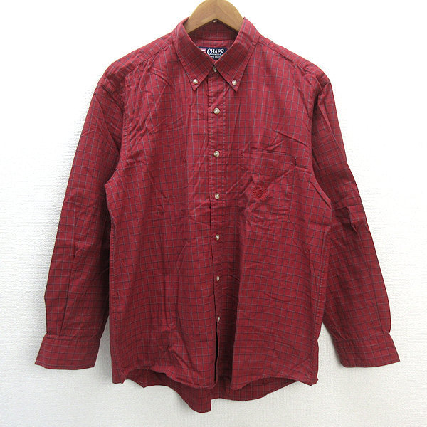 s■チャップス ラルフ/CHAPS Ralph Lauren チェック柄 長袖BDシャツ【L】赤/MENS/117【中古】