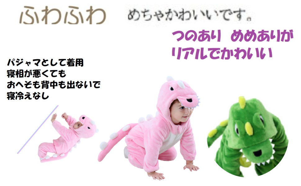 キッズ 恐竜 着ぐるみ グリーン ピンク 73 100 110 120パジャマ ロンパース カバーオール フランネル ホームウェア 寝間着 部屋着 ハロウィン 仮装 子供 コスチューム クリスマス 誕生日