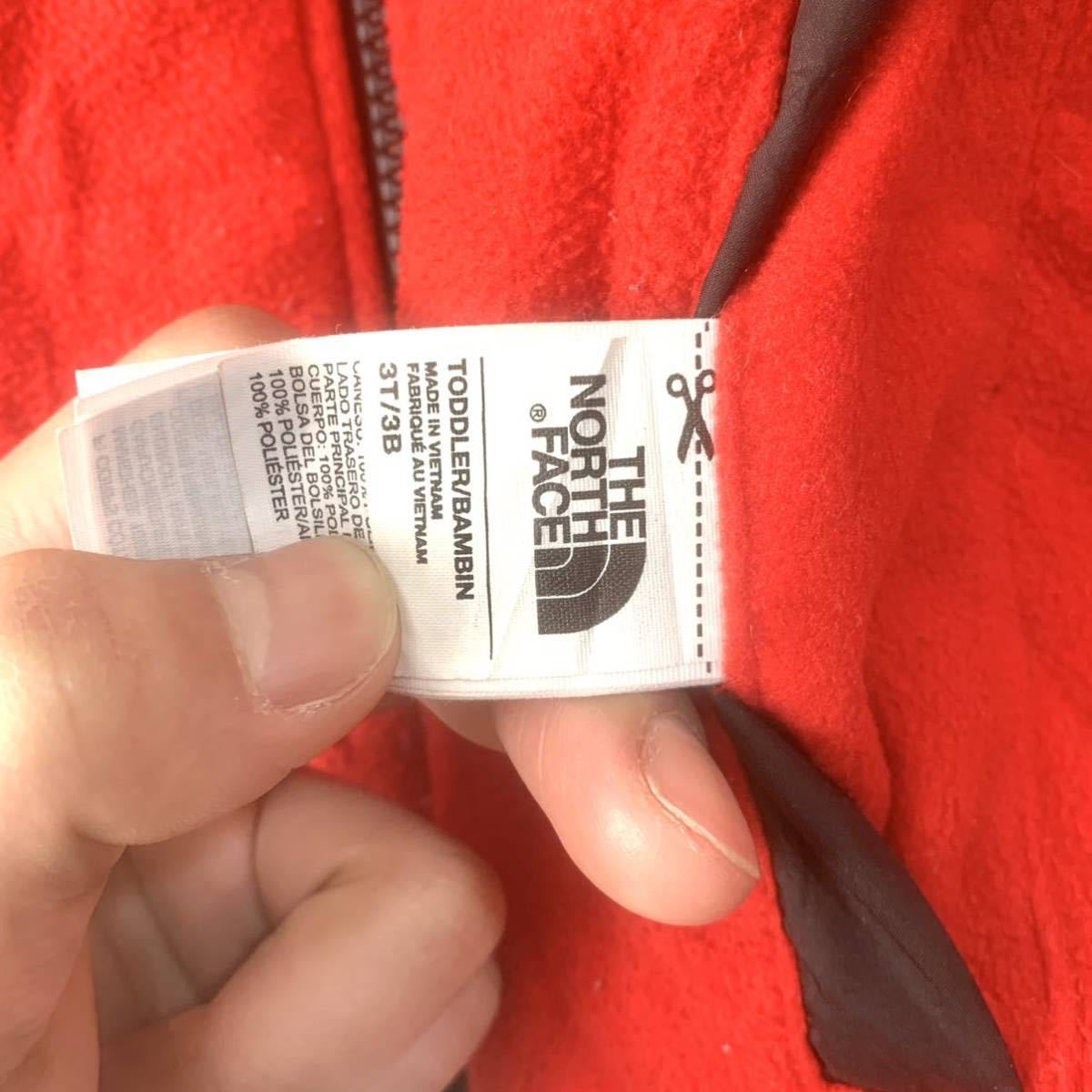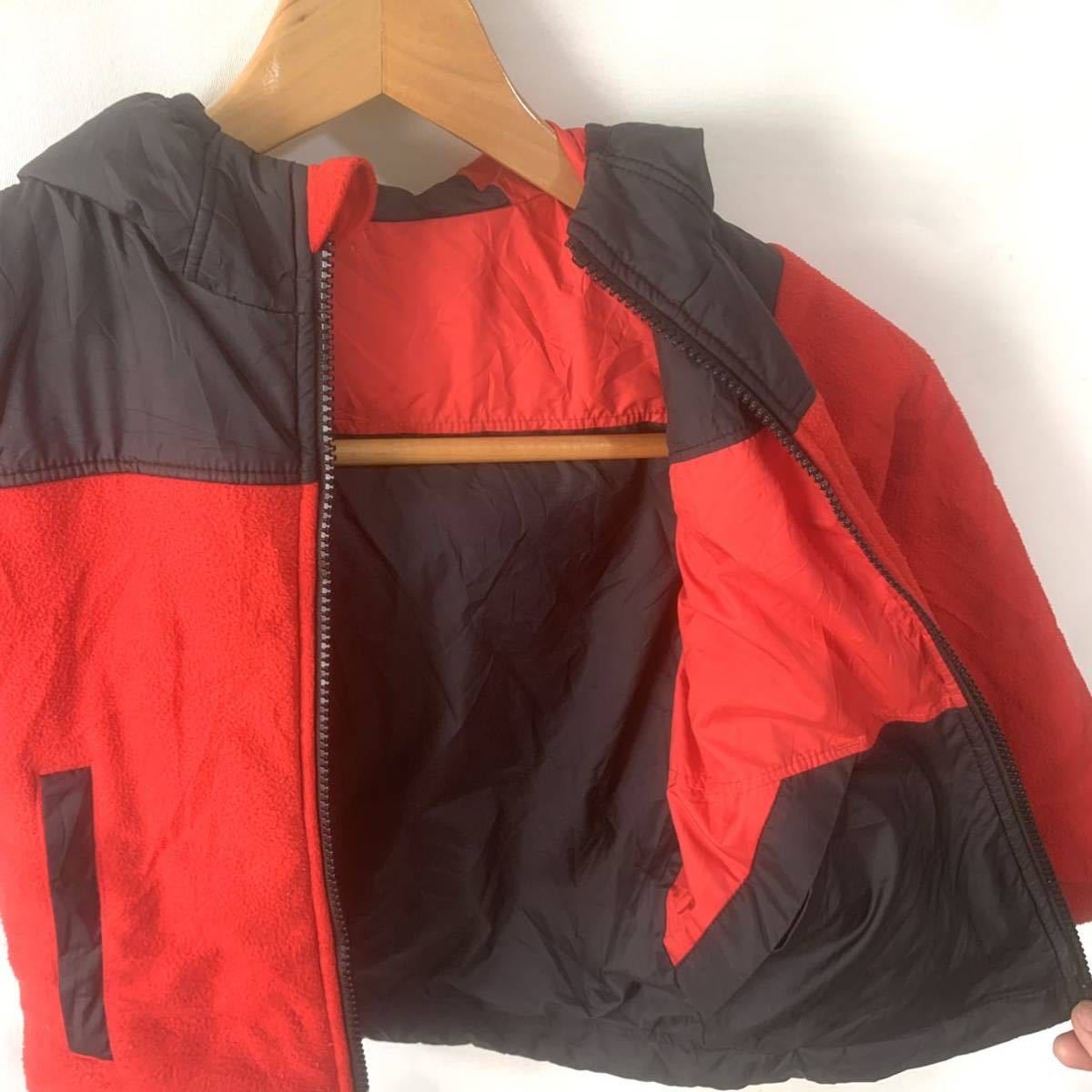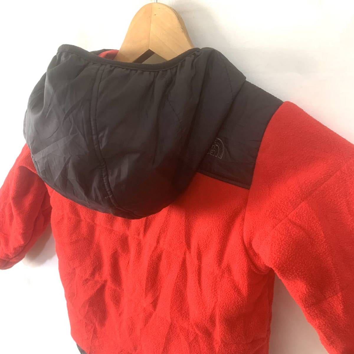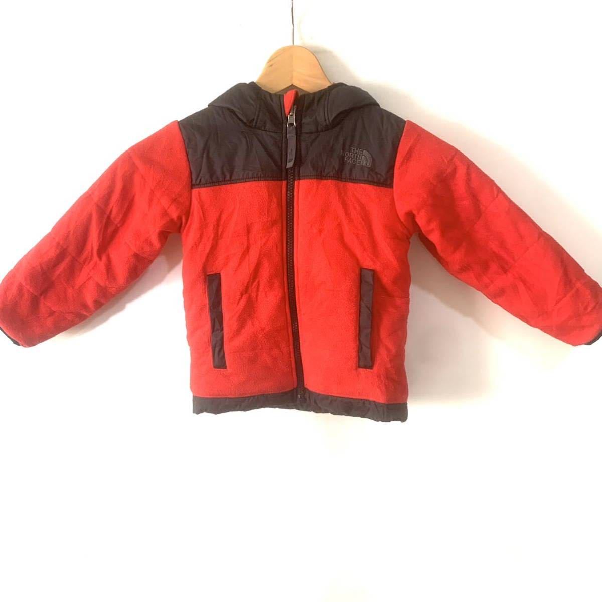 ■KIDS ビンテージ THE NORTH FACE ノースフェイス リバーシブル フルジップ 中綿入り 切り替えし フーディージャケット 古着 3T/3B■