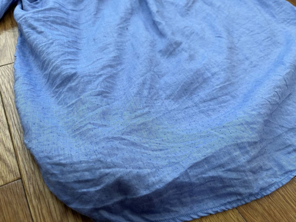 長期保管しておりましたのでシワがあります。裾部分に毛玉と薄い茶色いシミがあります。