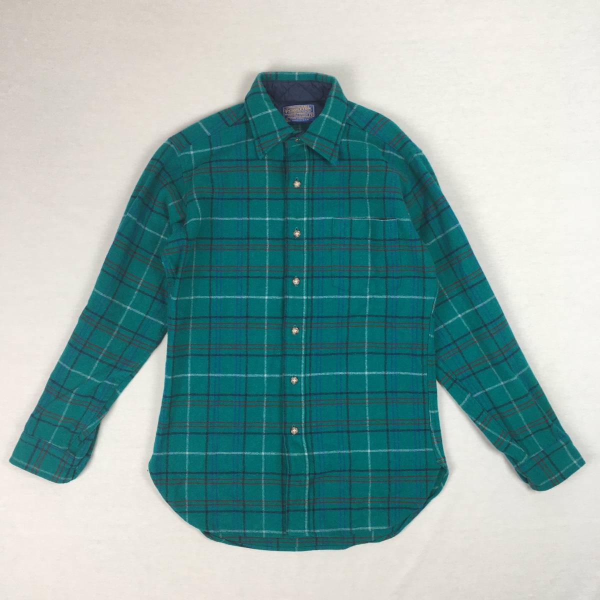 【70s 美品】PENDLETON ペンドルトン 米国製 ウールシャツ Sサイズ グリーン チェック柄 70年代 長袖