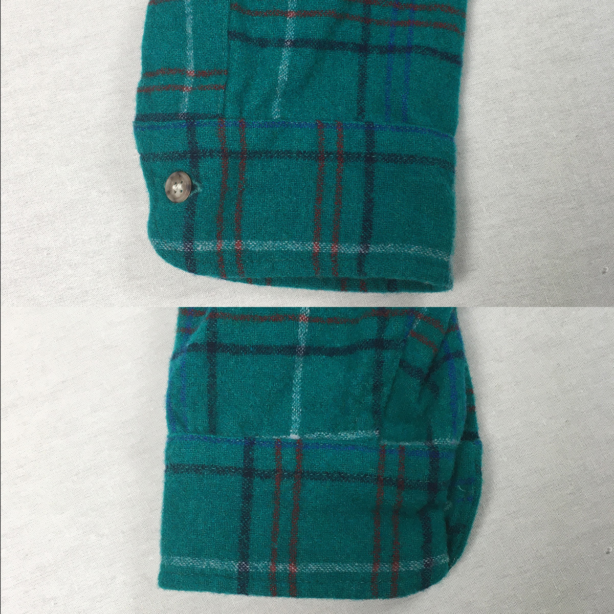 古いウールシャツに見られる虫食いの穴等はありません。