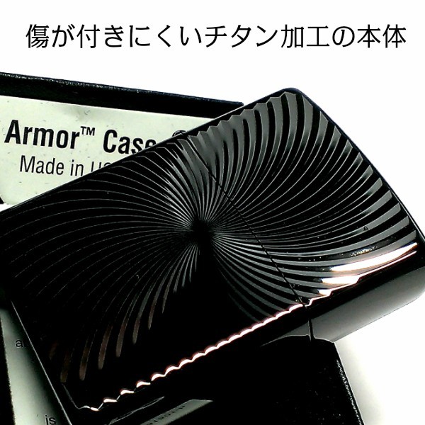 商品説明 | 「アーマー162 ブラックチタンウェーブ」 重みのあるアーマーベースの両面に、繊細で煌びやかなウェーブデザインを施した光の反射が美しいZIPPOライター。 本体には傷が付きにくいチタン加工が施されていますので、使用後の小傷などが気になる方にお勧めです。 アーマーとは従来のZIPPOより重厚で、金属の厚みがレギュラーモデルの1.5倍ございます。手にした瞬間にわかるその重量感は大変魅力的です。 とても美しい品ですので、プレゼント用にも大変オススメです。 |