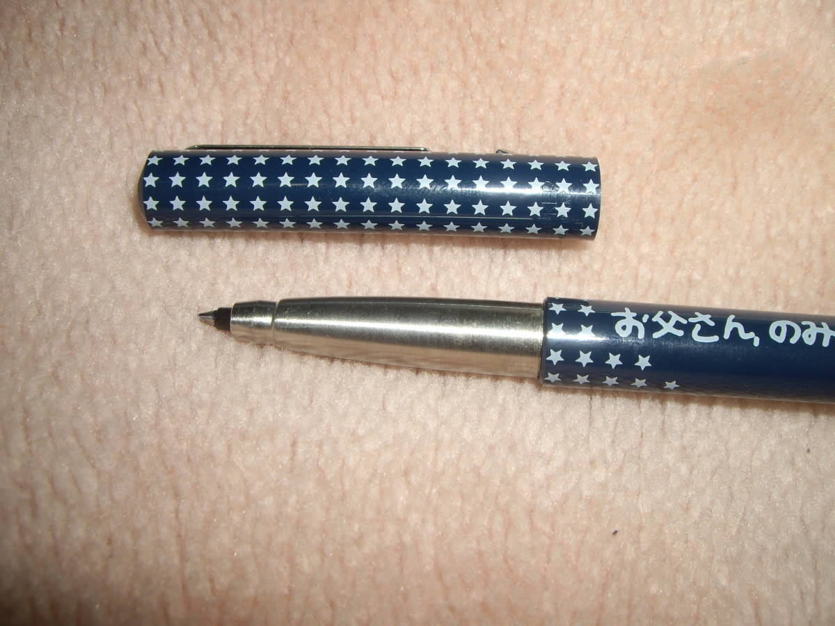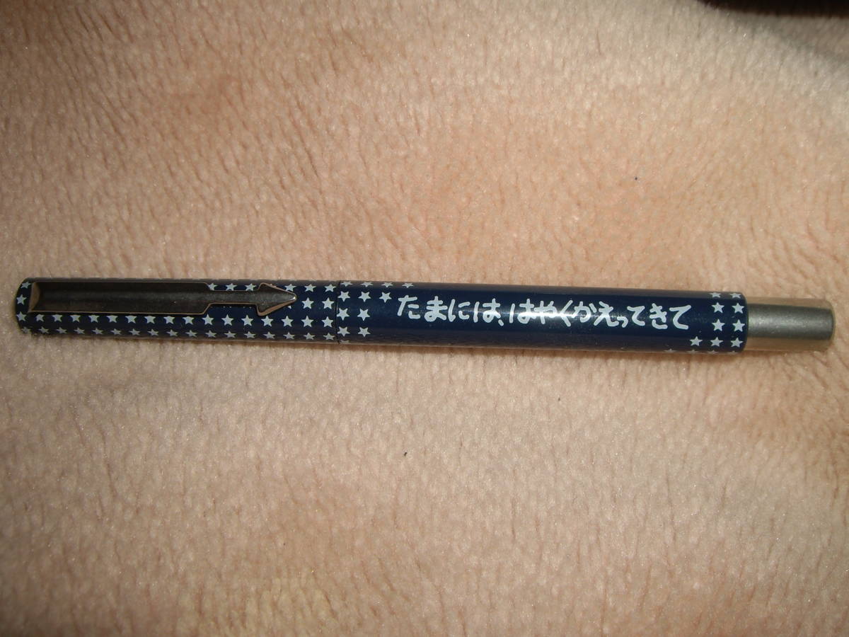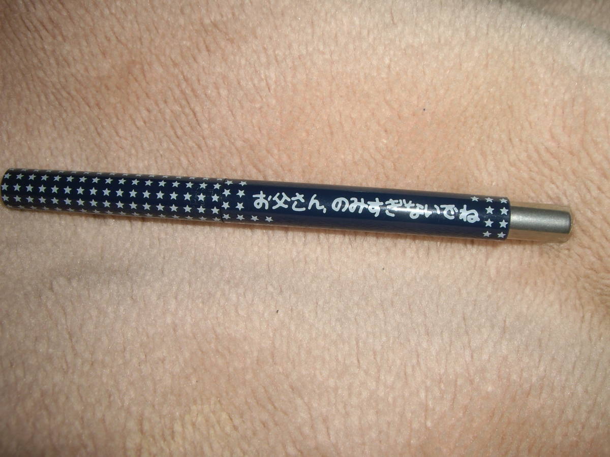 ボールペンに「お父さん、のみすぎないでね」「たまには、はやくかえってきて」と書いてあります。