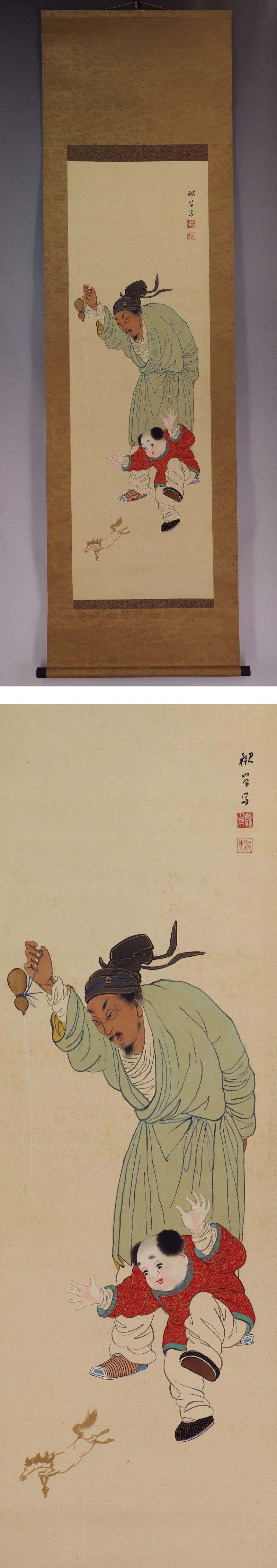 | №2111010【真作】高倉観崖【瓢箪から駒】◆絹本◆掛軸 | |