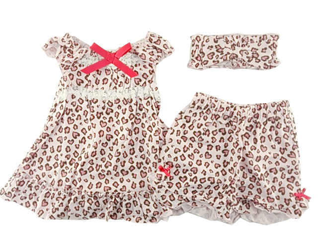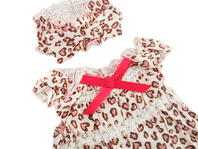 アニマル柄&リボンのアクセントがかわいい、女の子のルームウェアーセット (110サイズ)。