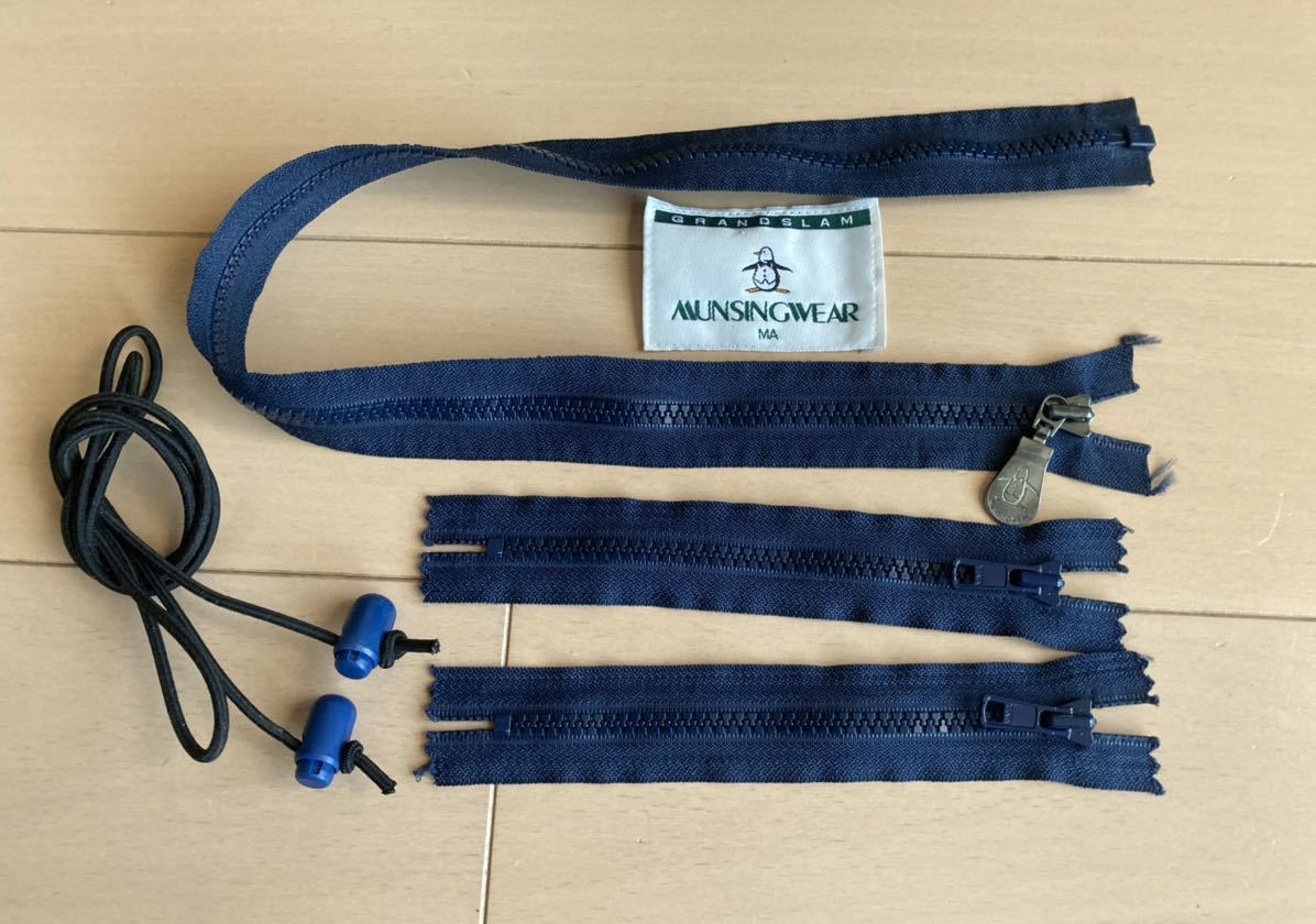 【中古】オープンファスナー1本 15センチファスナー2本 タグ コードストッパー  長期の自宅保管品 ハンドメイド MUNSINGWEAR