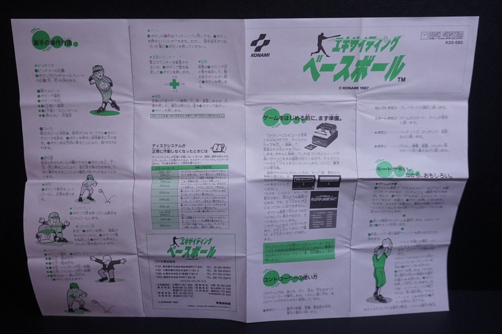 87年 KONAMI ファミコン ディスクシステム エキサイティング ベースボール 書き換え 説明書 シール付き 未使用品
