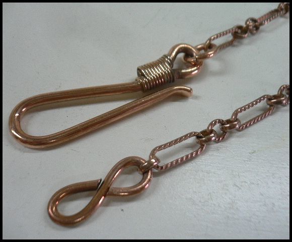 銅製 長あずきウォレットチェーン 釣り針型キーフック/銅キーホルダー等ALL30%OFF