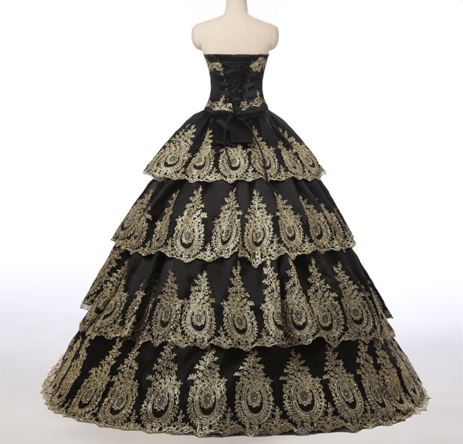 【サイズオーダー無料・パニエ付・アクセサリー小物付属】色変更無料★黒(ブラック)豪華パーティードレス4点結婚式二次会演奏会お色直し
