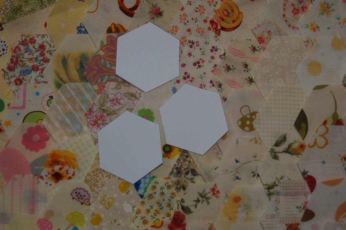 パッチワーク用六角形出来上がりサイズ26㎜に裁断してます。