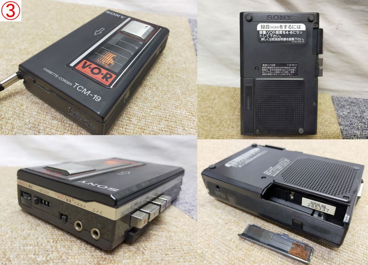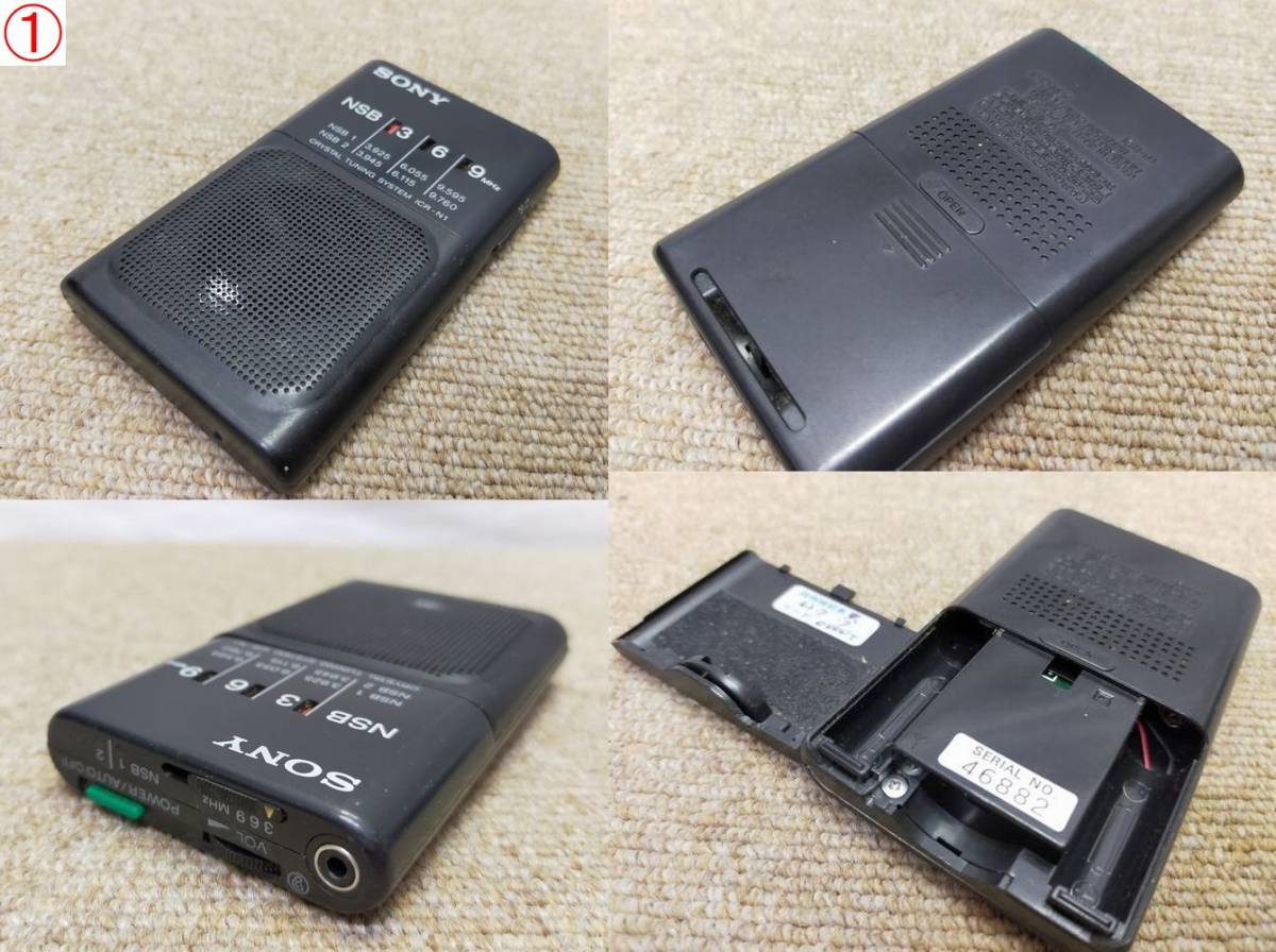 ■セット内容■ メーカー:SONY ソニー ① ラジオNIKKEI専用ポケッタブルラジオ ICR-N1 ② カセットコーダー TCM-400 ③ カセットコーダー TCM-19 ④ カセットコーダー TCM-858 電池、他ケーブル等は付属していませんので落札者様でご用意下さい。 ※写真に写っているもので全てとなっております。 ■状態■ すべて動作不良のあるジャンク品となっております。 ①、通電しませんでした。 ②、再生、録音の確認はできましたが巻き戻しボタンが反応しない場合がありました。 ③、再生、録音の確認はできましたが、巻き戻し、早送りボタンが反応しませんでした。 ④、通電はしましたが再生ボタン等を押すと異音が鳴り、回転しませんでした。その他のボタンも同じ症状でした。 使用品につきキズ、汚れ等がございますのでご了承下さい。 ※その他の状態については写真にてご確認ください。 ■落札のご注意■ 詳しい状態等の質問は当方ではお答えできかねますのでご了承下さい。 動作不良がある為ジャンク品となっています。 調整、修理等可能な方、ご理解のある方以外は入札をお控え下さい。 ノークレーム・ノーリターンでお願い致します。 スマートフォンでご覧の方で送料の確認方法は一つ前の画面下部で確認できます | |