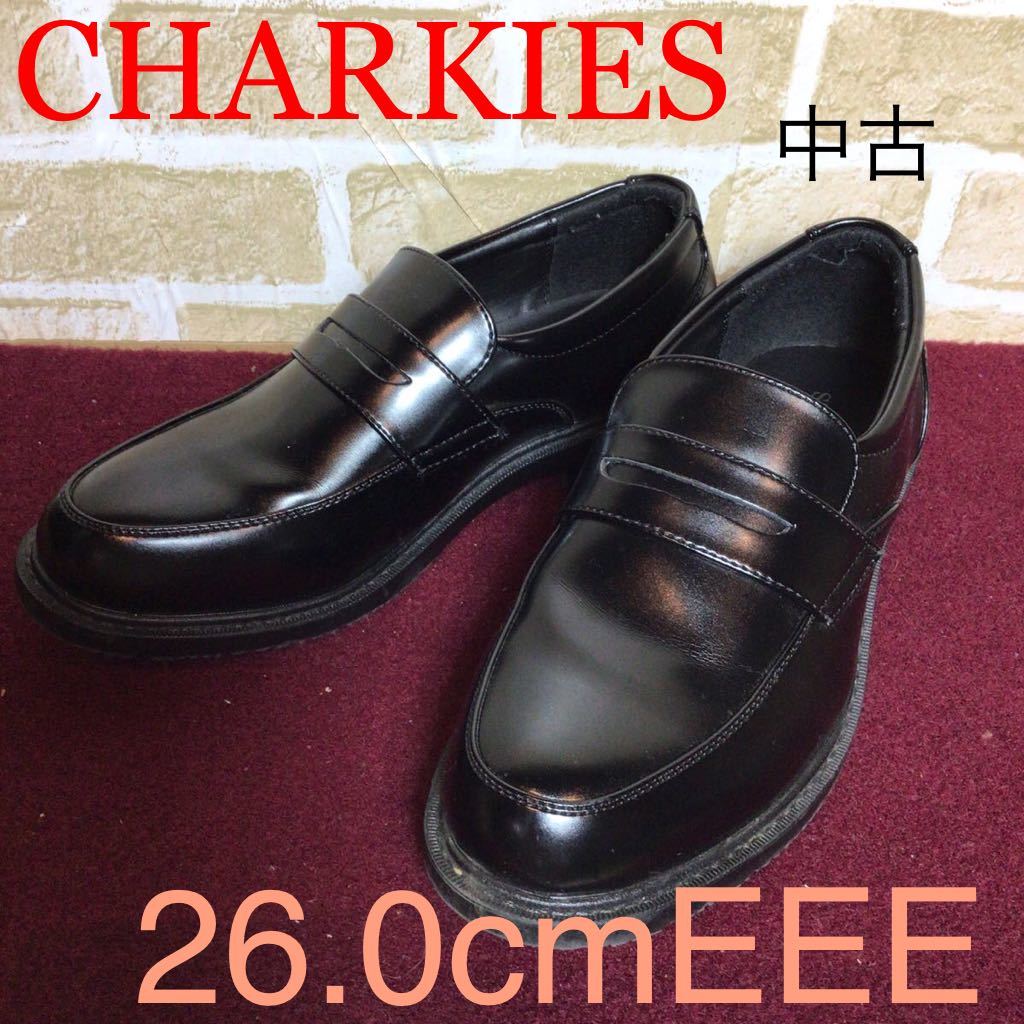 【売り切り!送料無料!】A-138 CHARKIES!コインローファー!26.0cmEEE!幅広ゆったり!黒!ビジネスシューズ!冠婚葬祭!入園入学卒園卒業式!中古!