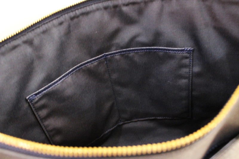 バッグ内部のポケット部分のレザータグ(品番記載しているタグ)部分がレザーの経年劣化により一部ポロポロtp剥がれ御座います。