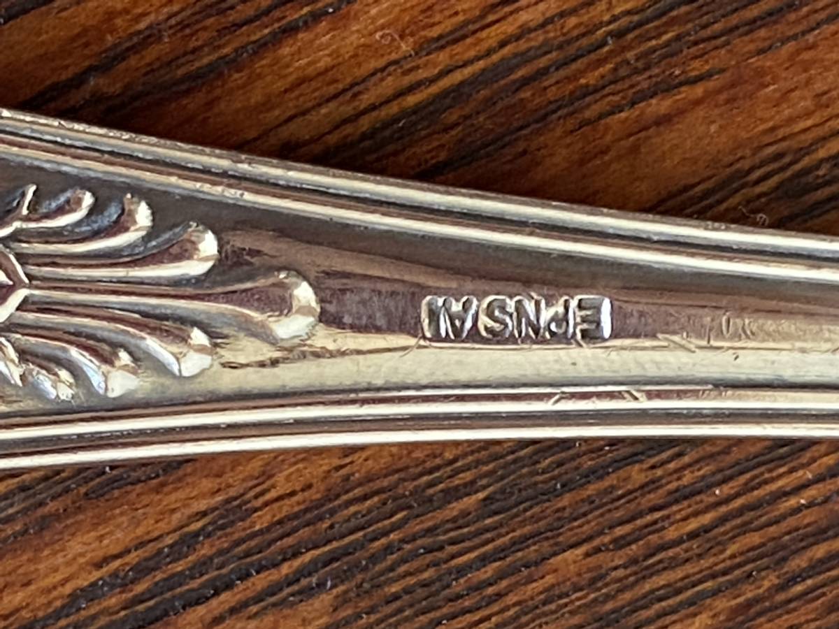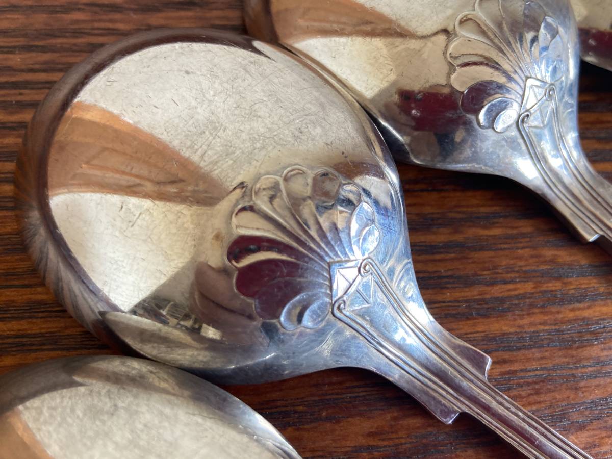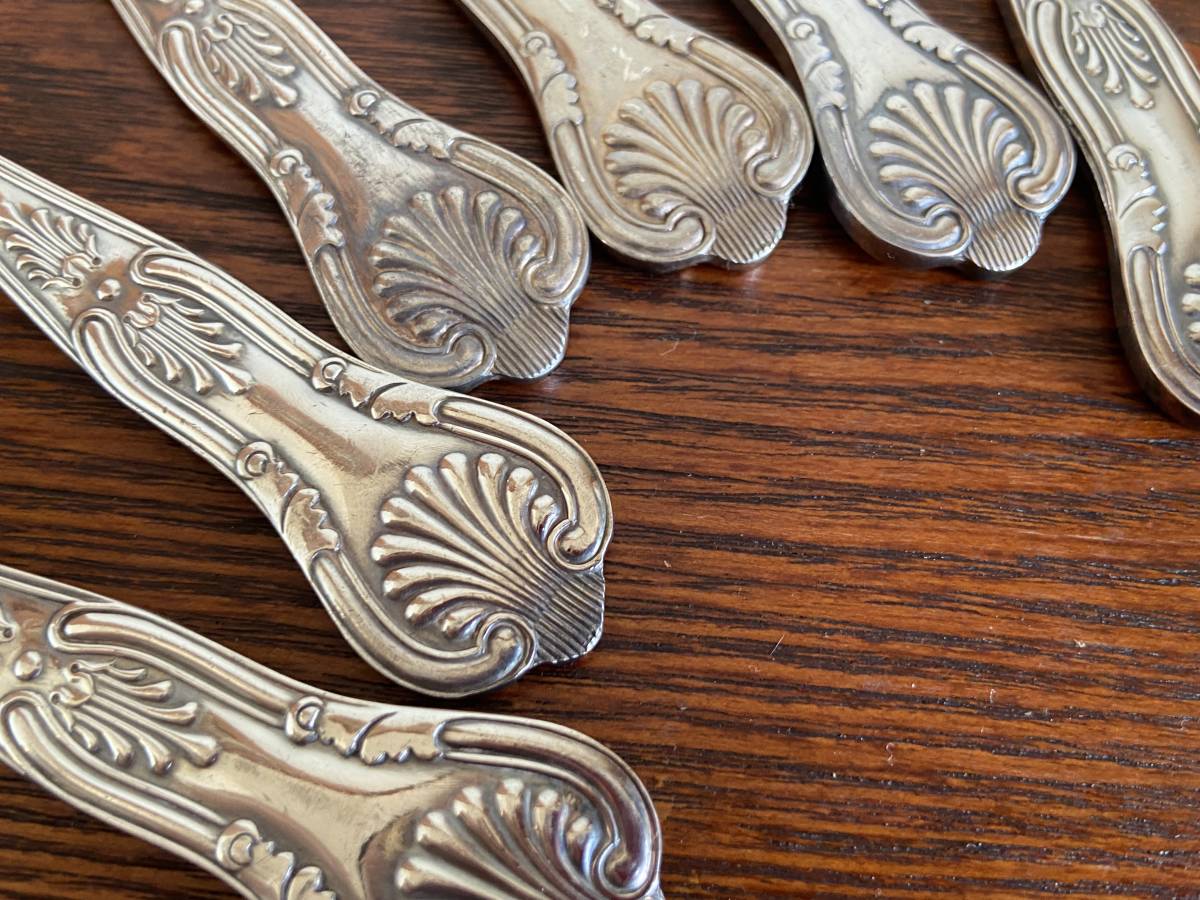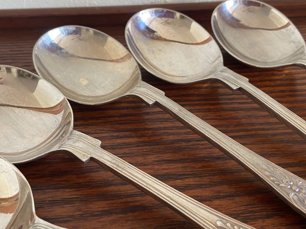 | イギリスビンテージ 伝統的なデザイン、キングスパターン 銀メッキ製カトラリーです。 スープスプーン 21cm 6本 全体的に細かな傷やわずかな汚れが見られます。 | |||