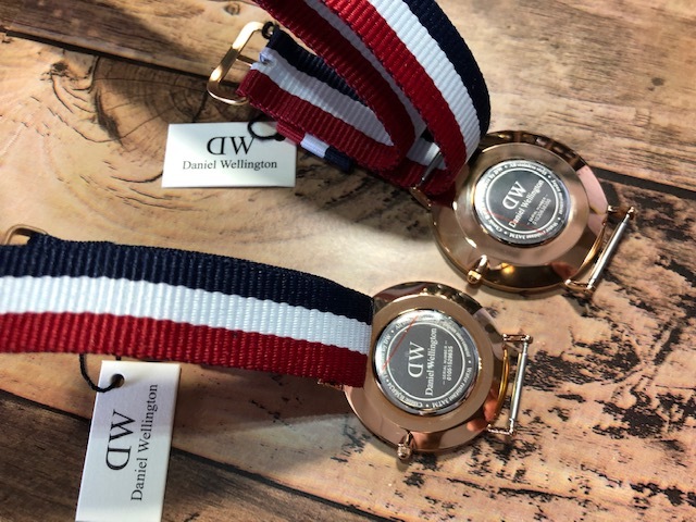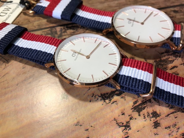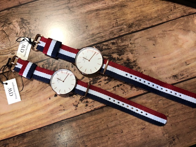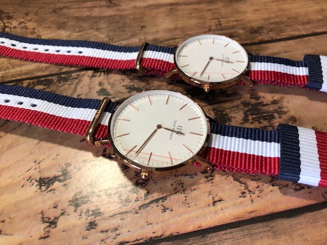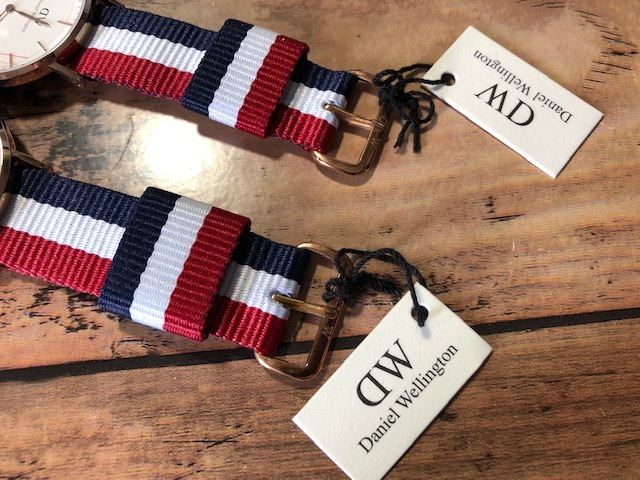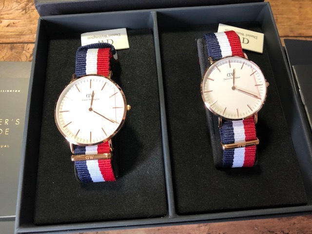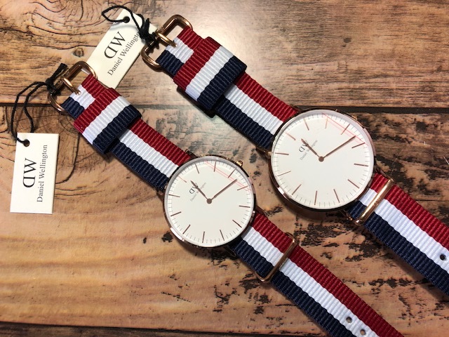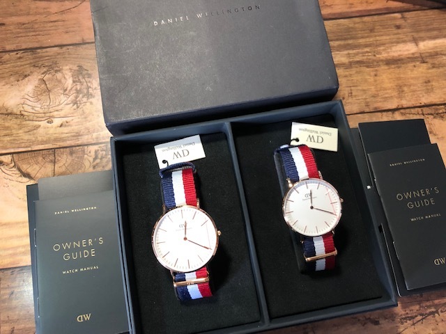 BK727 未使用近い 美品 付属品付 ペア Daniel Wellington ダニエル ウェリントン Classic Cambridge 純正ストライプベルト クオーツ 腕時計
