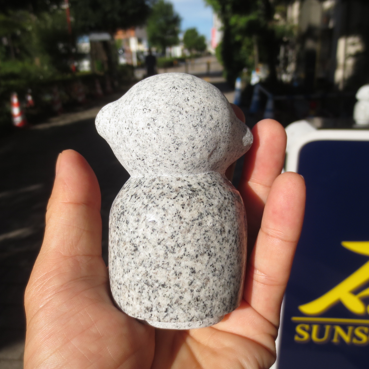 みかげ石の原石から削りだされたお地蔵さん 職人さんがひとつひとつ手彫り手加工の手作りなので造形、寸法、表情に若干の個体差がございます。(目と口は塗料で表現しています) 高さ:約9cm、重量:約400g、材料:御影石G63 スペースを気にせずかわいいお地蔵さんを飾ることができます!! ☆レターパックプラスで発送しますので対面でのお届けとなります。追跡番号で配達状況が確認できます。 ★御影石とはマグマが地下深い所でゆっくり冷えて固まった深成岩で花崗岩に分類され風化しないといわれています。 おじぞう/ おじぞうさま/ おじぞうさん/ お地蔵様/ 地蔵菩薩/ 石像/ 石仏/ 仏像/ 彫刻品/ 置物/ オブジェ/東洋彫刻