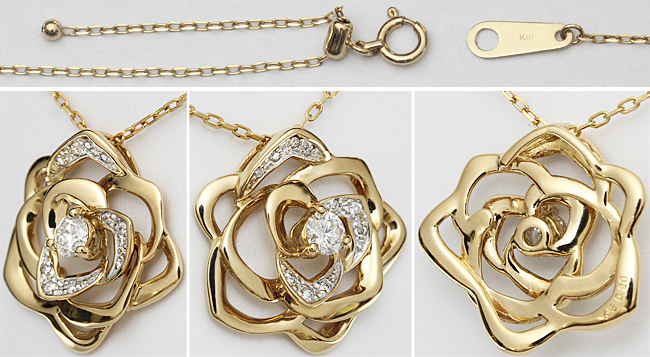 | バラ 薔薇☆ダイヤ 0.20ct K18 花 ローズ 上品 華麗 エレガント ペンダント ネックレス♪鑑別書付・送料込 | ||