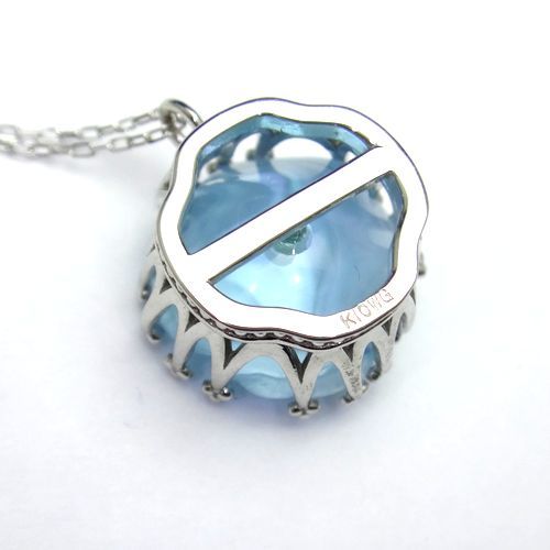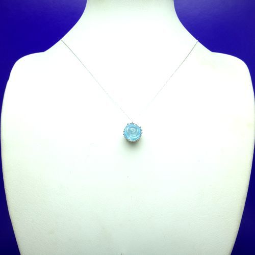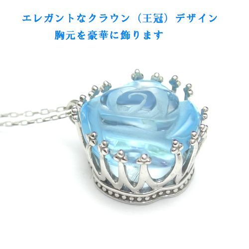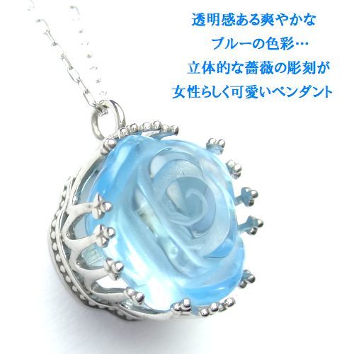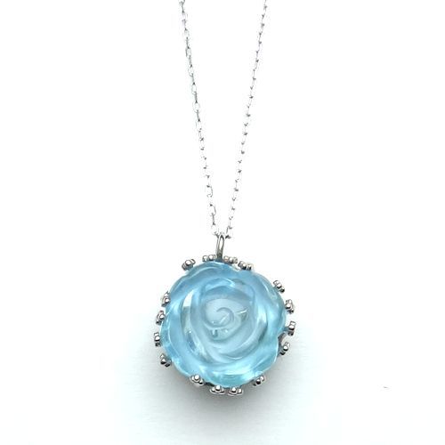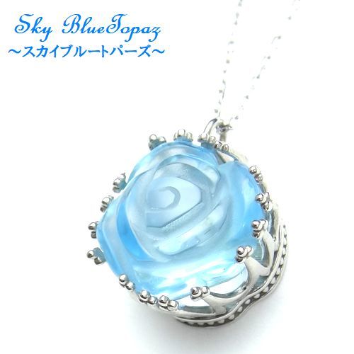 K10WG スカイブルートパーズ 4ctsUP 10mm ローズ カービング ペンダント クラウン ネックレス ジュエリー 薔薇 バラ 彫刻 フラワー 箱付き