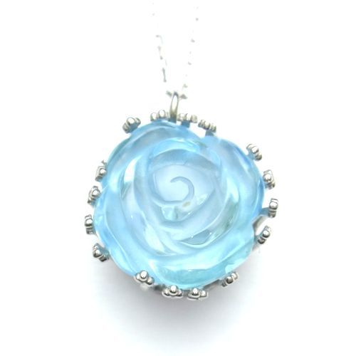 スカイブルートパーズのローズカービングのペンダントネックレスです!