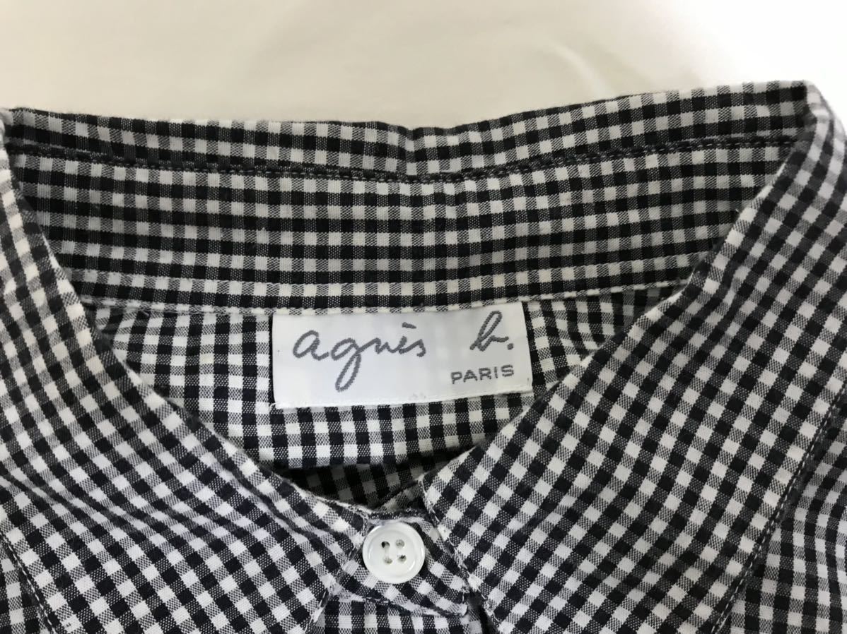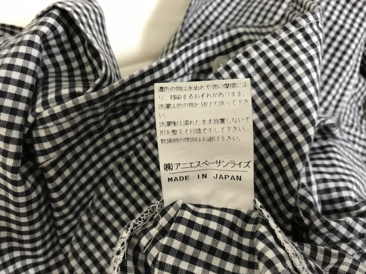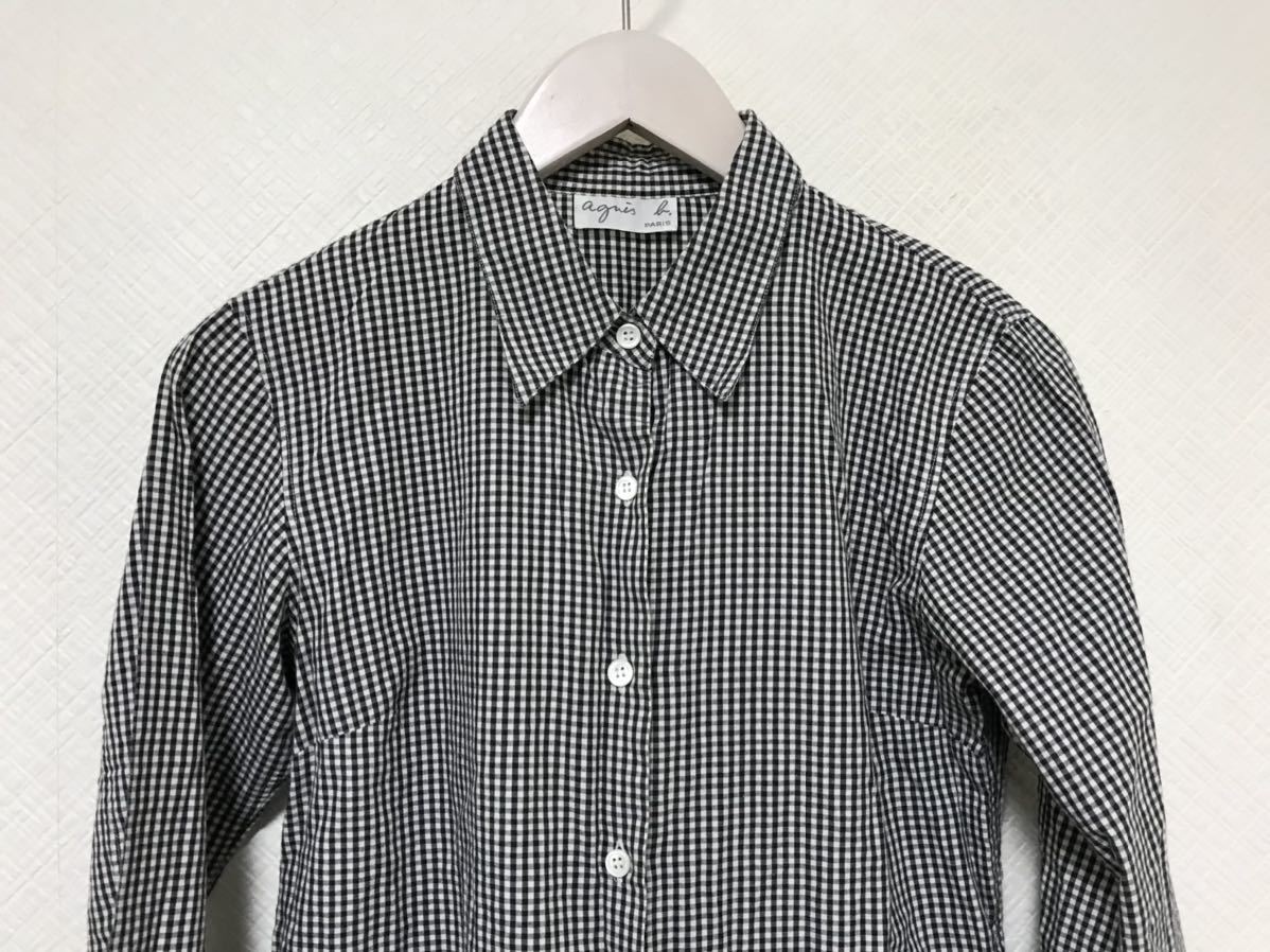 商品名:本物アニエスベーagnisbコットン長袖ギンガムチェック柄長袖シャツレディース白黒ブラック日本製